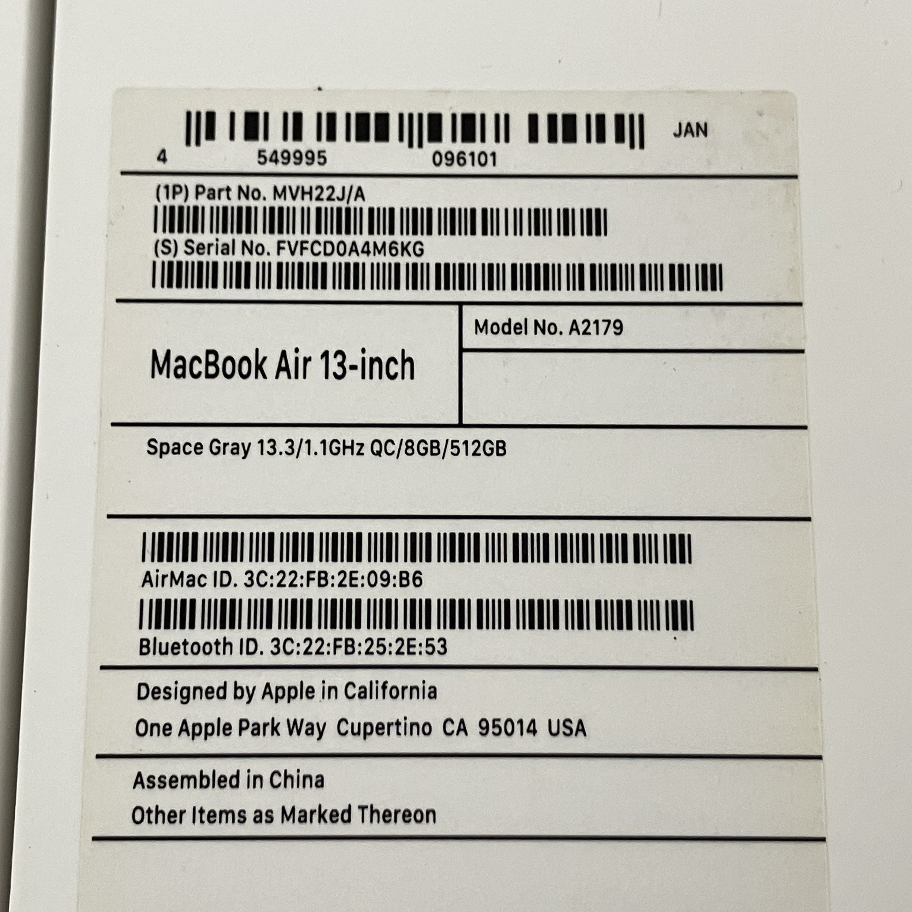 | シリーズ | MacBook Air Retina 13インチ 2020 | シリアル | FVFCD0A4M6KG |