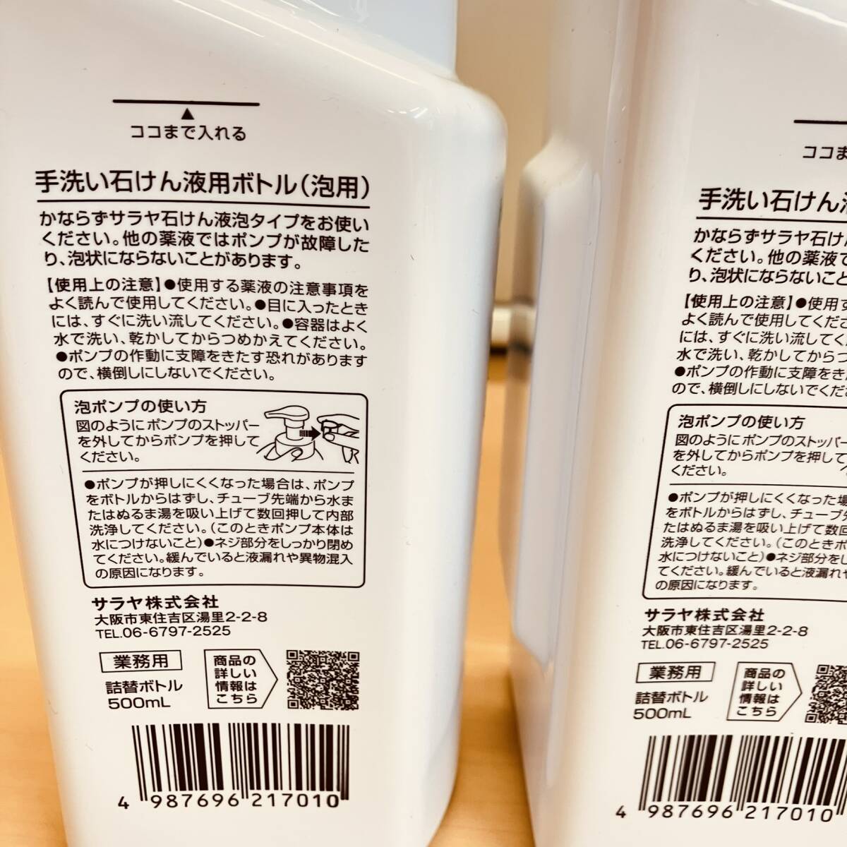 SARAYA(サラヤ)スマートボトル 500mL 泡ポンプ付 石けん液用 3個(※ 薬液は入っていません)
