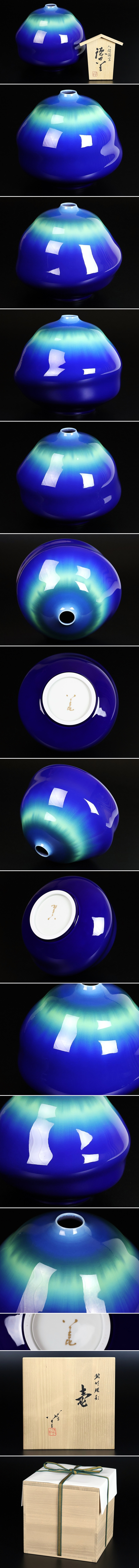 【 三代徳田八十吉 】最上位作 碧明耀彩壷 古稀以降の最晩年作品! 共箱 保証