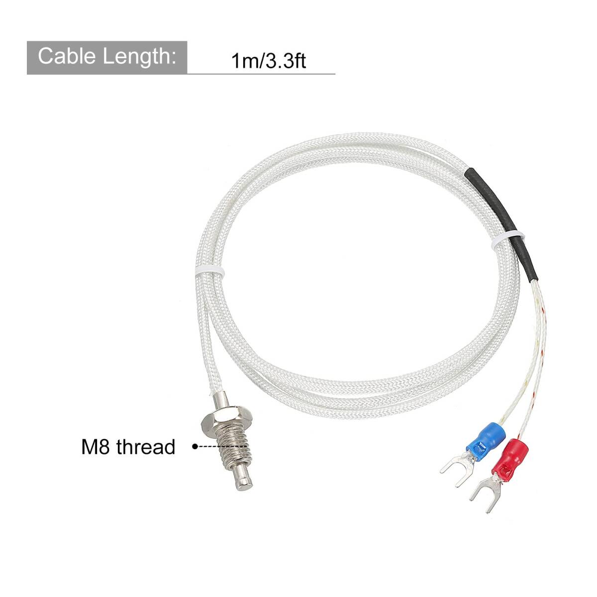 温度センサーは、次のサイズ: M8 ネジ、 1 Mのケーブル長さ、 0-400°C測定温度