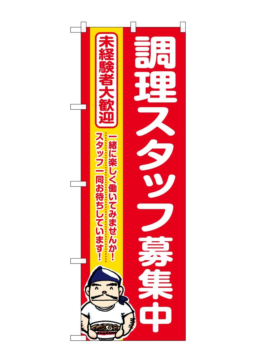 のぼり屋工房 のぼり 調理スタッフ募集中赤ラーメン W600×H1800mm GNB-3285 1枚 三方三巻 販促