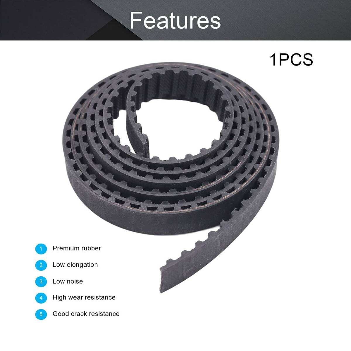 【利点】タイミングベルトはプレミアムゴムで作られており、グラスファイバーコアを使用して、耐久性と柔軟性が向上しています。