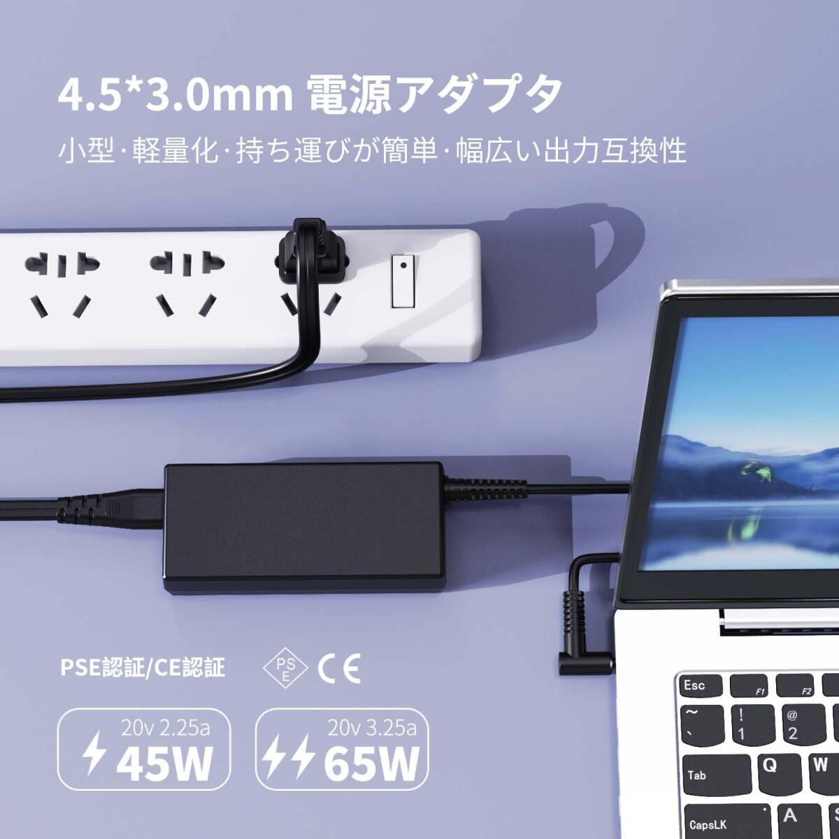 入力:100-240V 出力:20V 3.25A 65W;対応 45w;PSE電気用品安全法適用製品