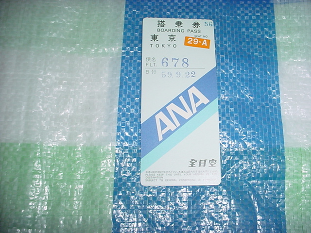 昭和59年9月22日 全日空 使用済み搭乗券