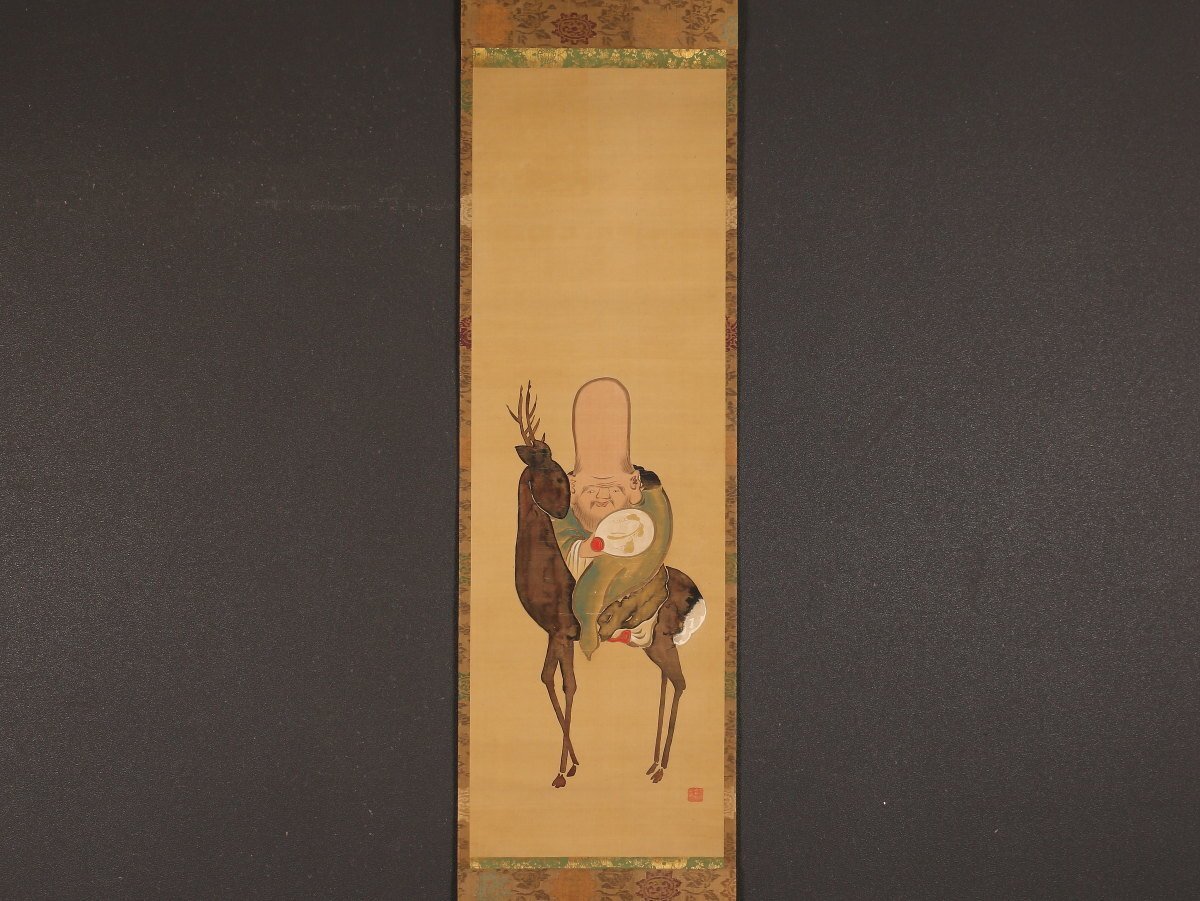 【模写】【伝来】am8390〈尾形乾山〉福禄寿図 描き表具 琳派 陶工 光琳の弟 江戸時代中期