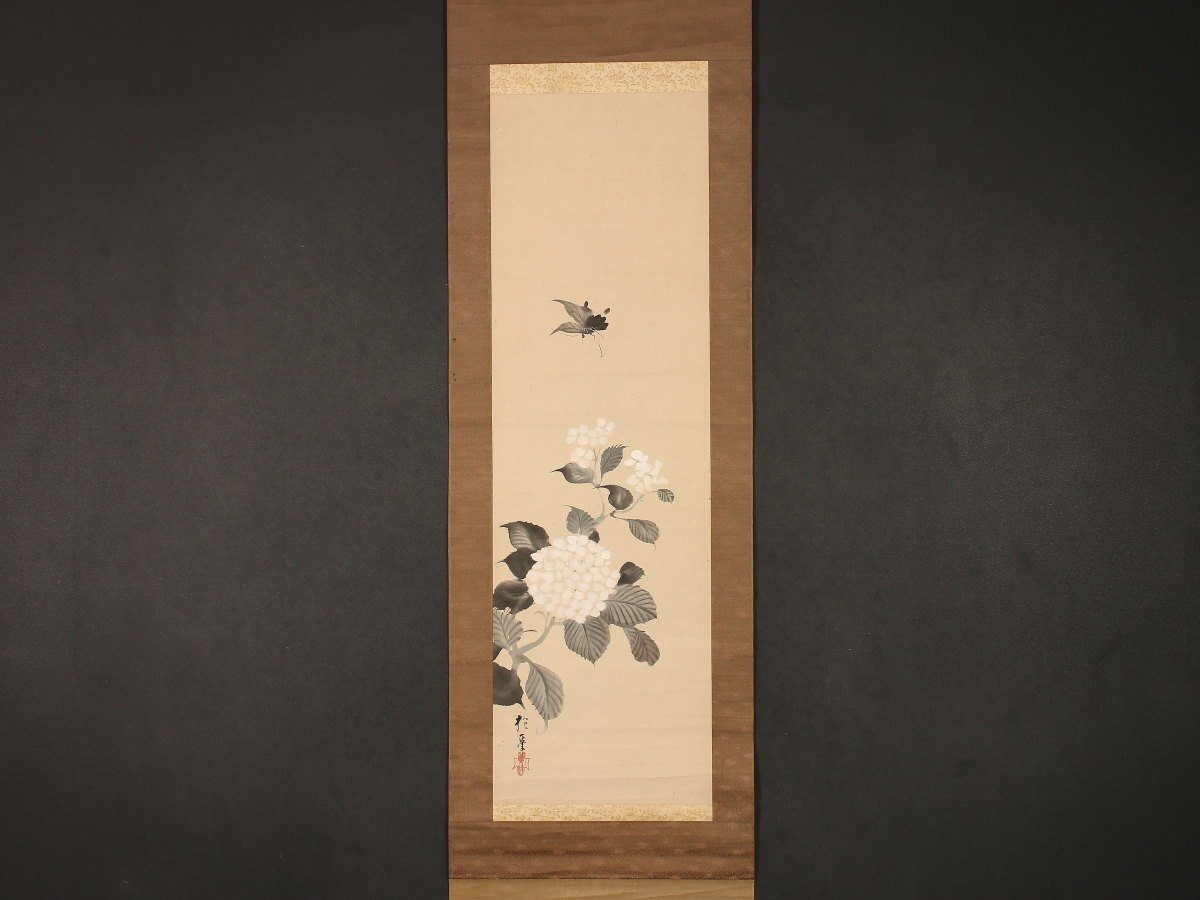 【模写】【伝来】am5410〈酒井抱一〉紫陽花図 琳派 江戸時代後期 東京の人