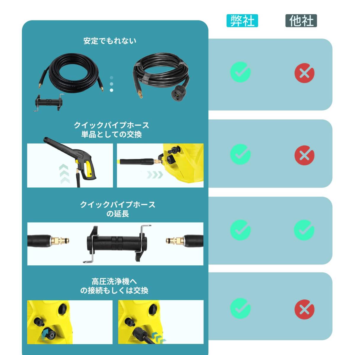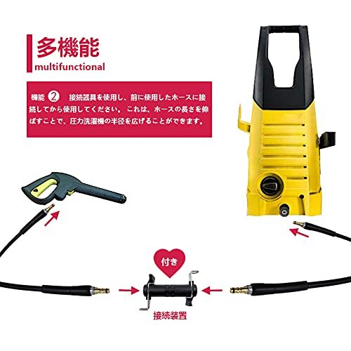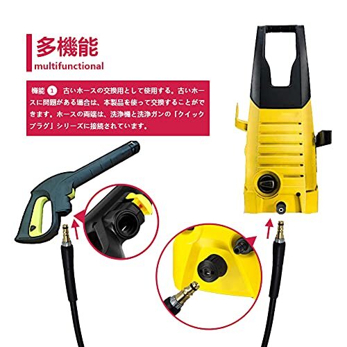 【多機能ケルヒャー高圧洗浄機ホース】?交換機能:本製品を使って交換することができます。ケルヒャーホースの両端は、洗浄機と洗浄ガンの「クイック プラグ」シリーズに接続されています。 ? 延長機能:接続器具を使用し、前に使用したホースに接続してから使用してください。 これは、ホースの長さを伸ばすことで、圧力洗濯機の半径を広げることができます。清掃作業をもっと楽になります!