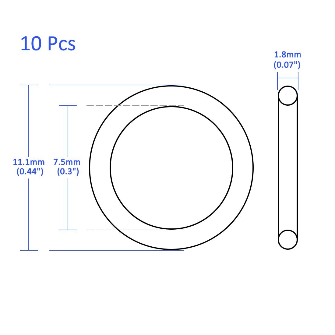 パッケージ内容: 10個ブラックのOリング、ニトリルゴム製(70Aデュロメータ、動作温度範囲: -4?-212? / -20°C-100°C)サイズは11.1x7.5x1.8 mm