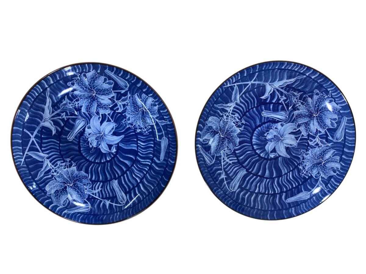 | 商品名 | 昭和レトロ 大皿 2枚まとめ 和食器 ゆり 花柄 絵皿 藍色 染付 中古 |