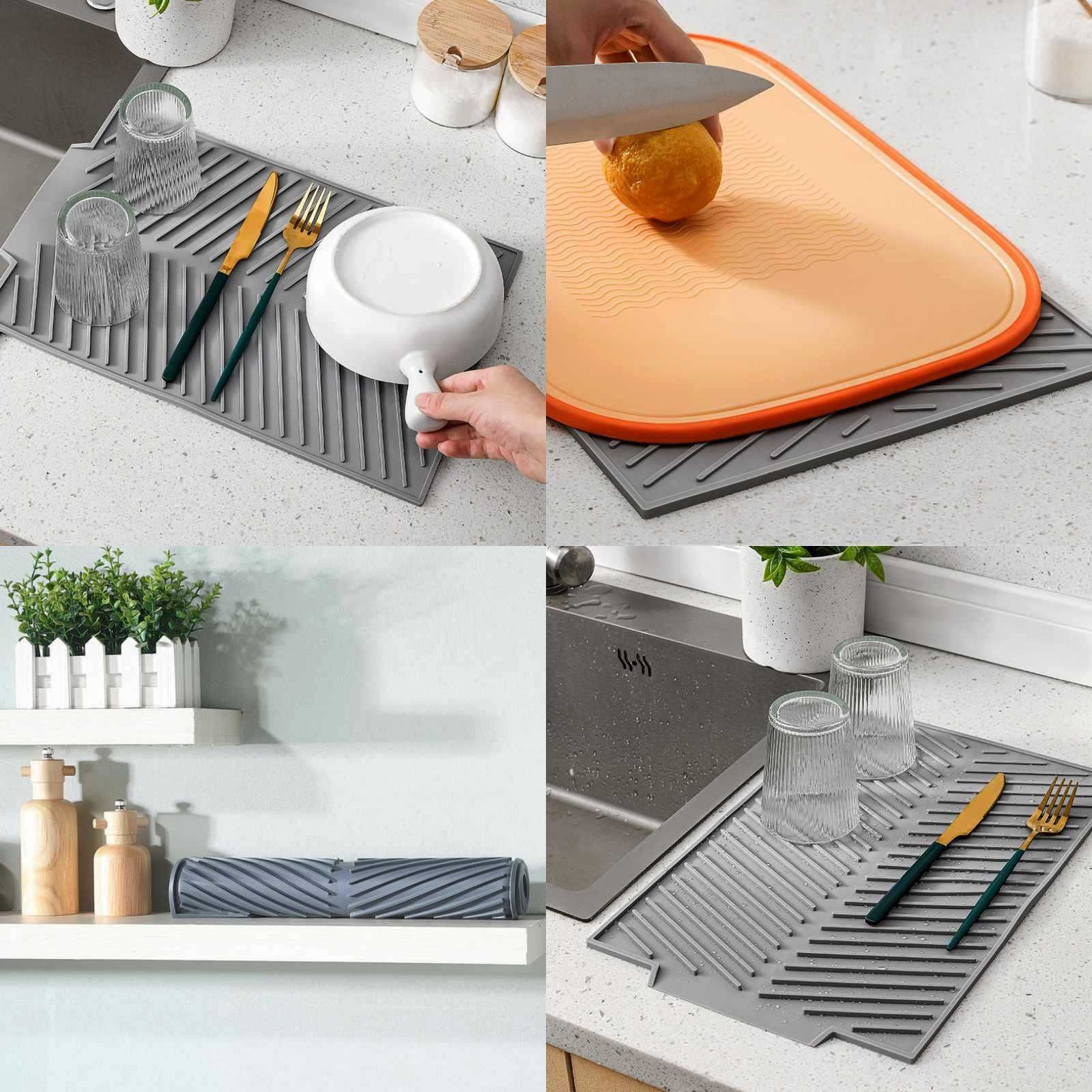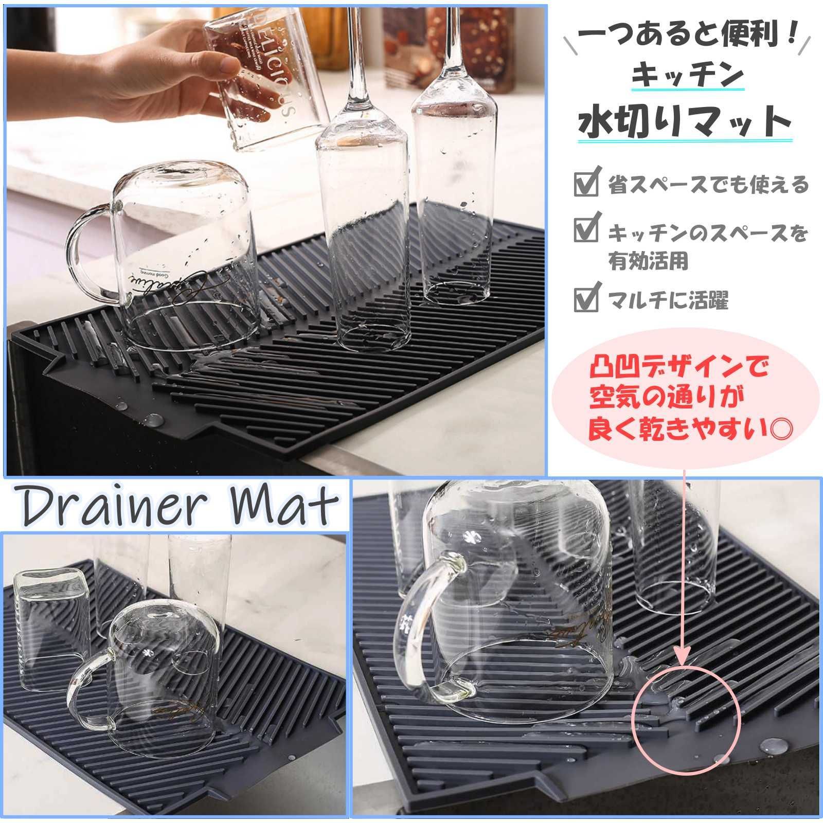 凹凸デザインで空気の通りが良く食器が乾きやすいシリコン製の水切りマットです。