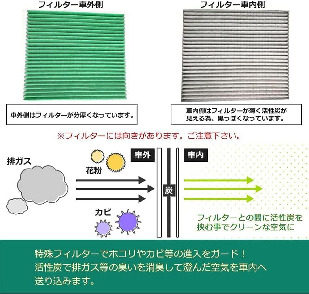 トヨタ車用 アイシス エアコンフィルター アリオン イスト ウィッシュ 10系 ヴィッツ NCP81・85 ポルテ bB NCP# RAV4 活性炭入り 交換用 フィルター 特殊5層構造 抗菌 消臭 脱臭 適合品番DCC1004 87139-12010