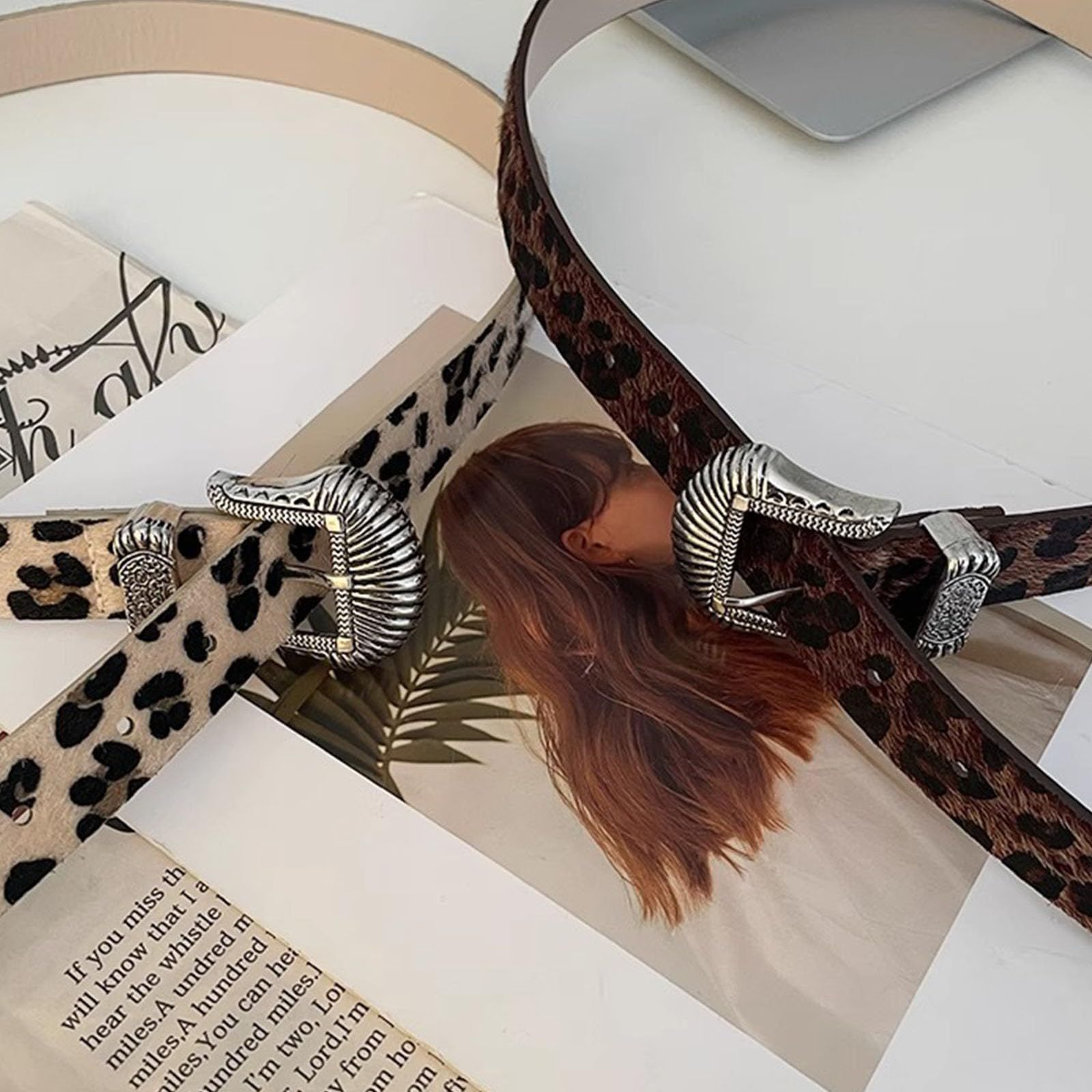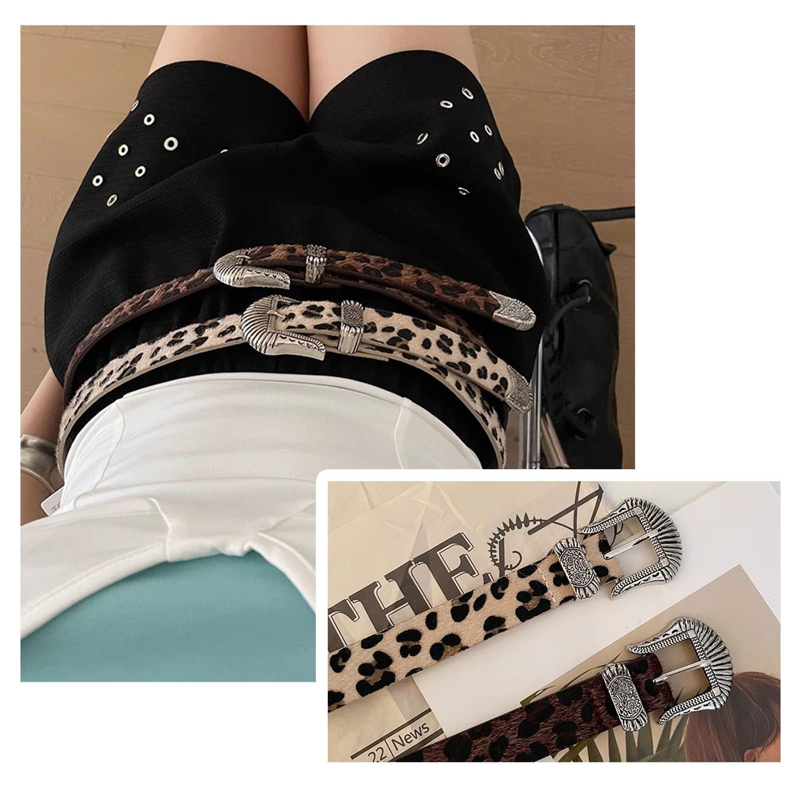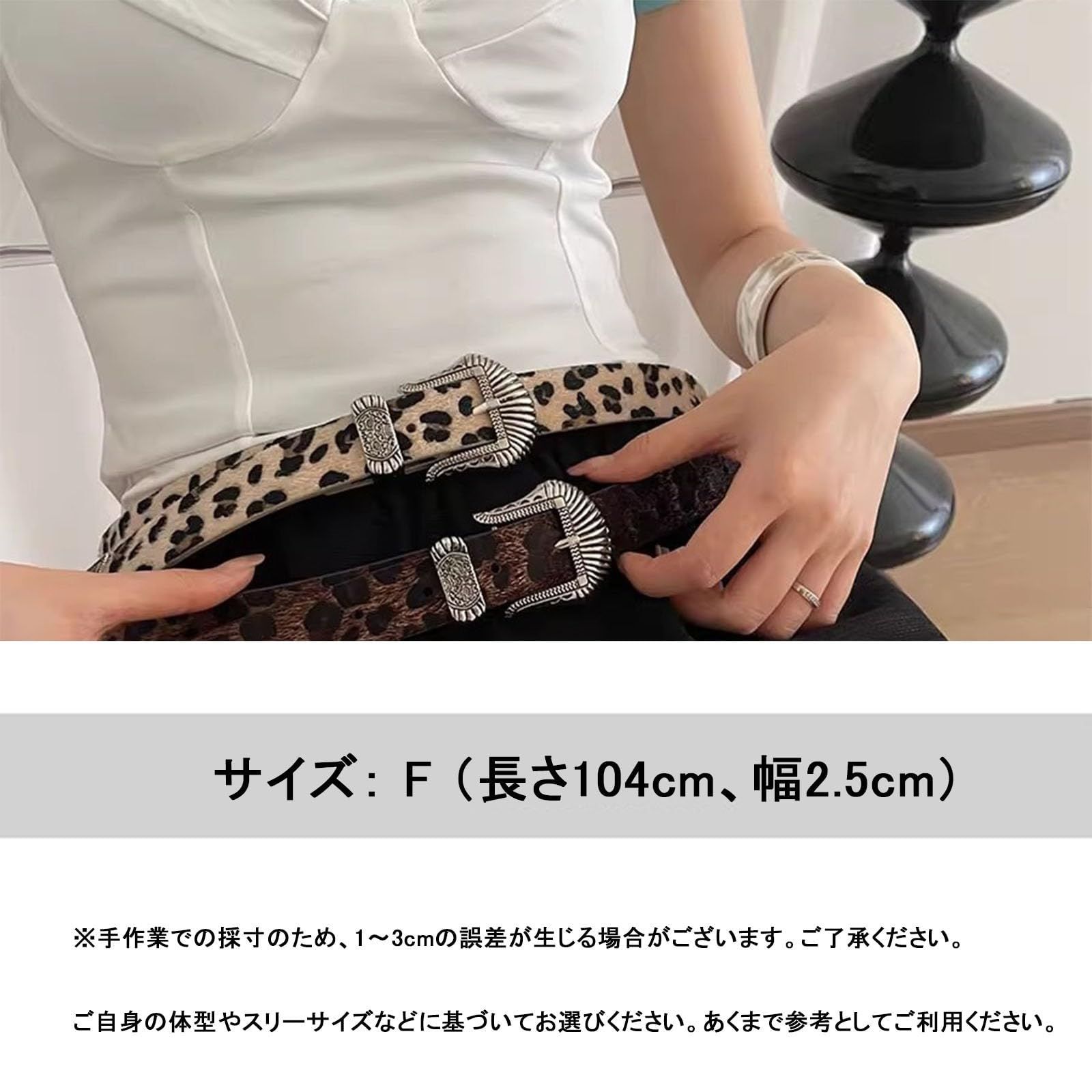 [NazyJnn] レオパード柄 細ベルト レディース ウエスタンバックル PUレザー おしゃれ アクセント カジュアルベルト 104cm×2.5cm