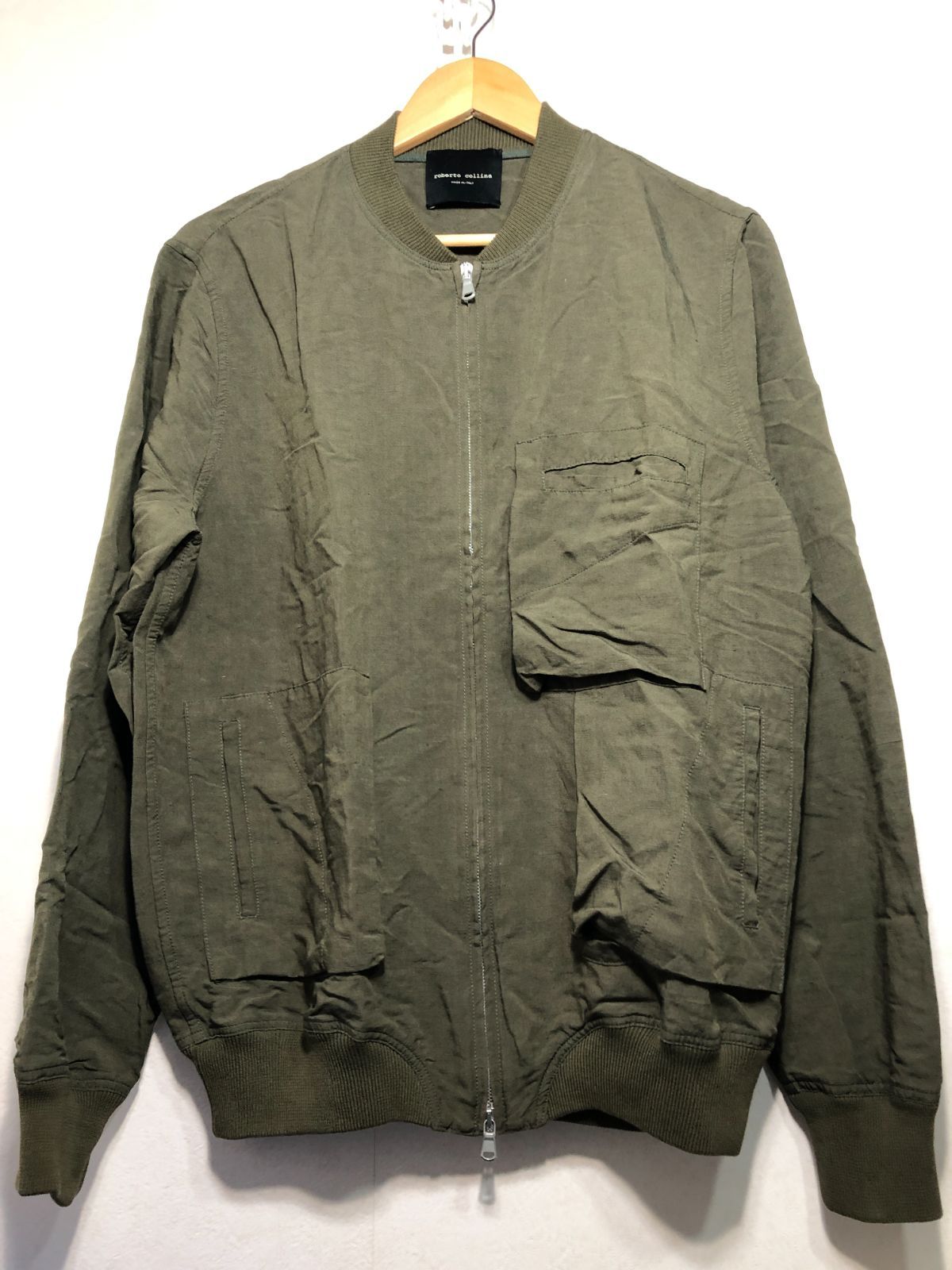 030122 roberto collina リネン混 ジップ ジャケット 48 カーキ オリーブ リブ ロベルトコリーナ
