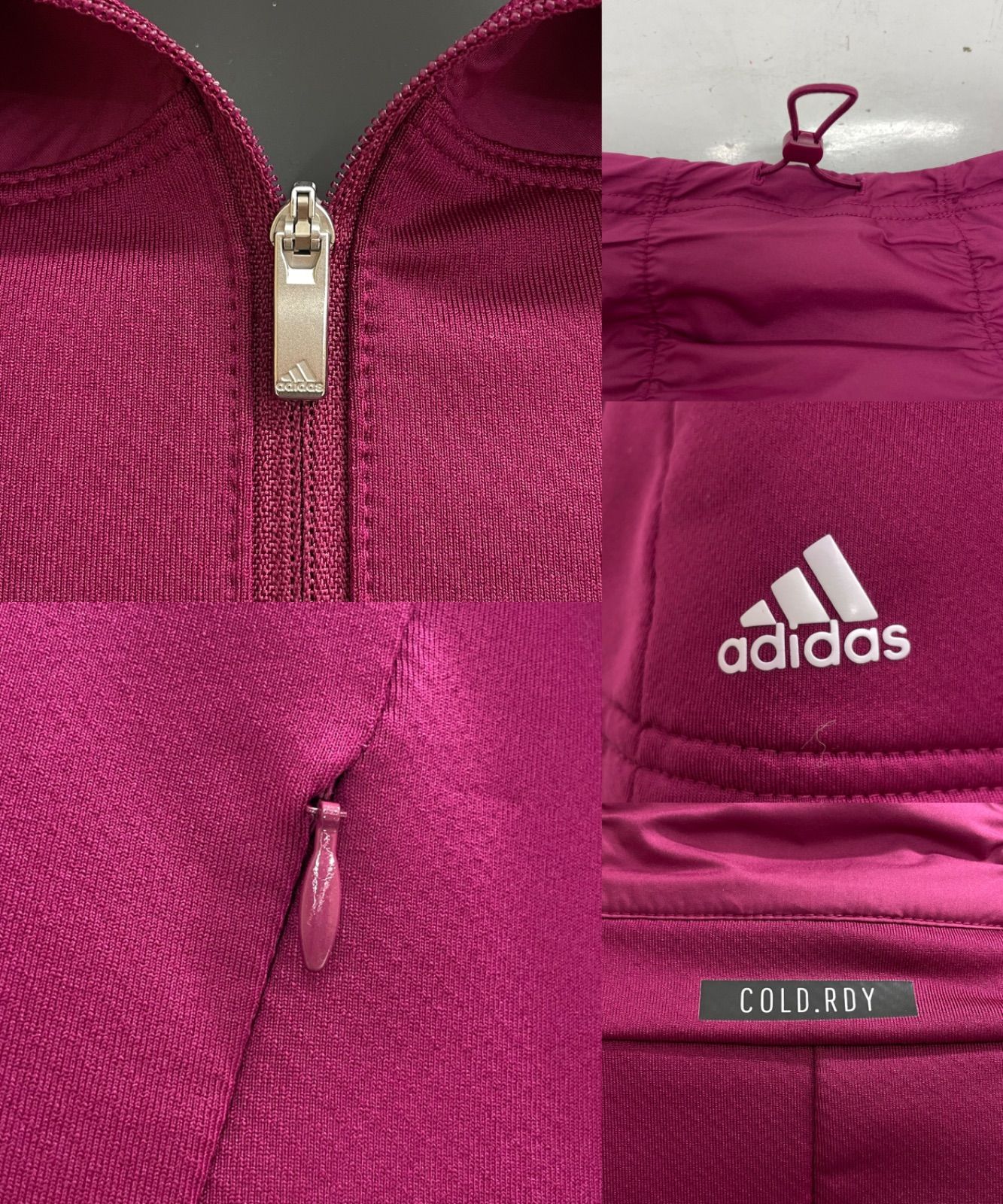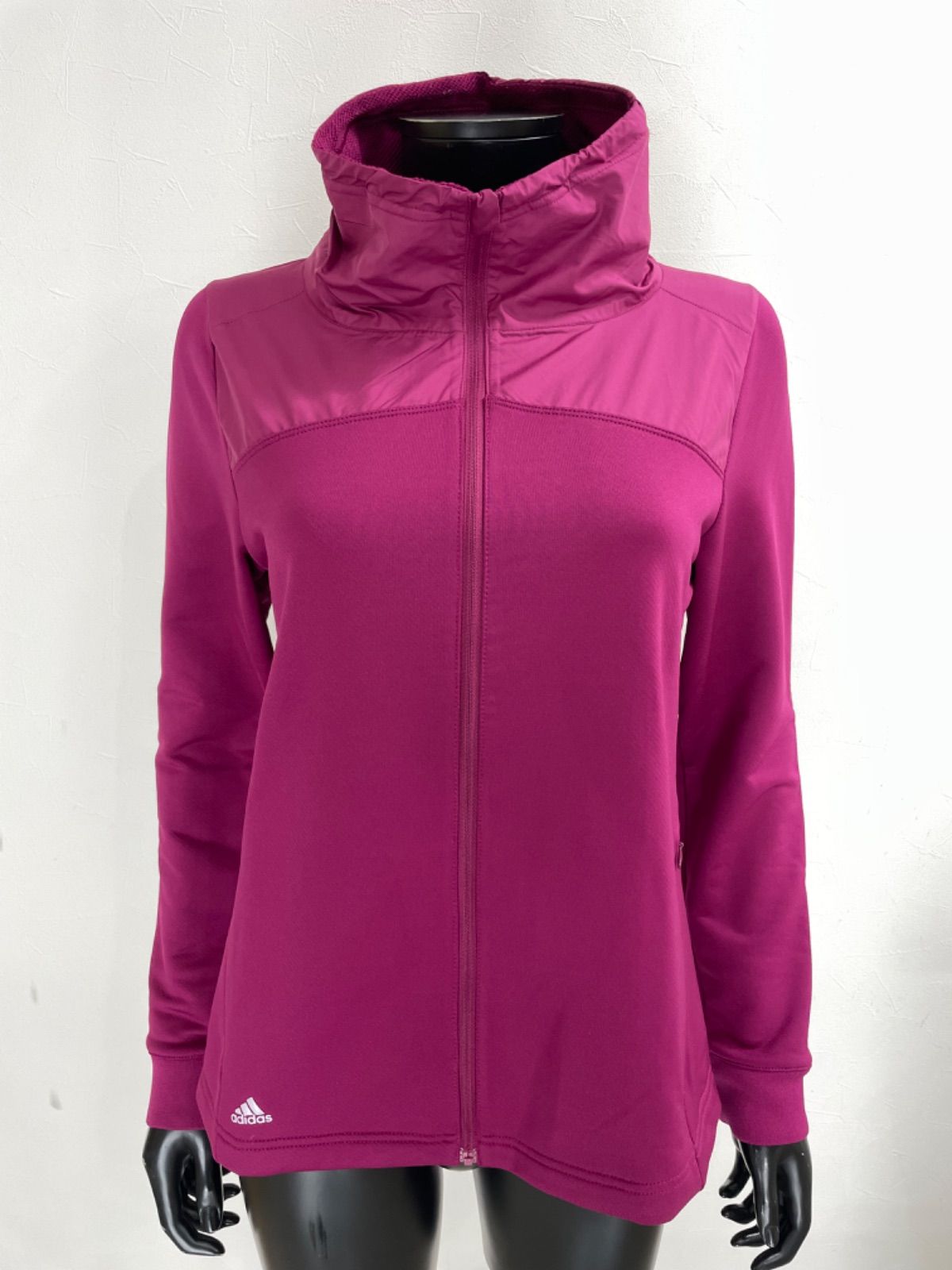 【USED】adidas アディダス ポリエステル フルジップ 長袖 ジャケット ブルゾン レッド系 赤 レディース L ゴルフウェア