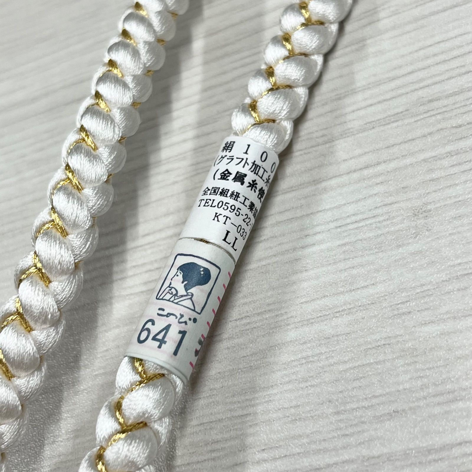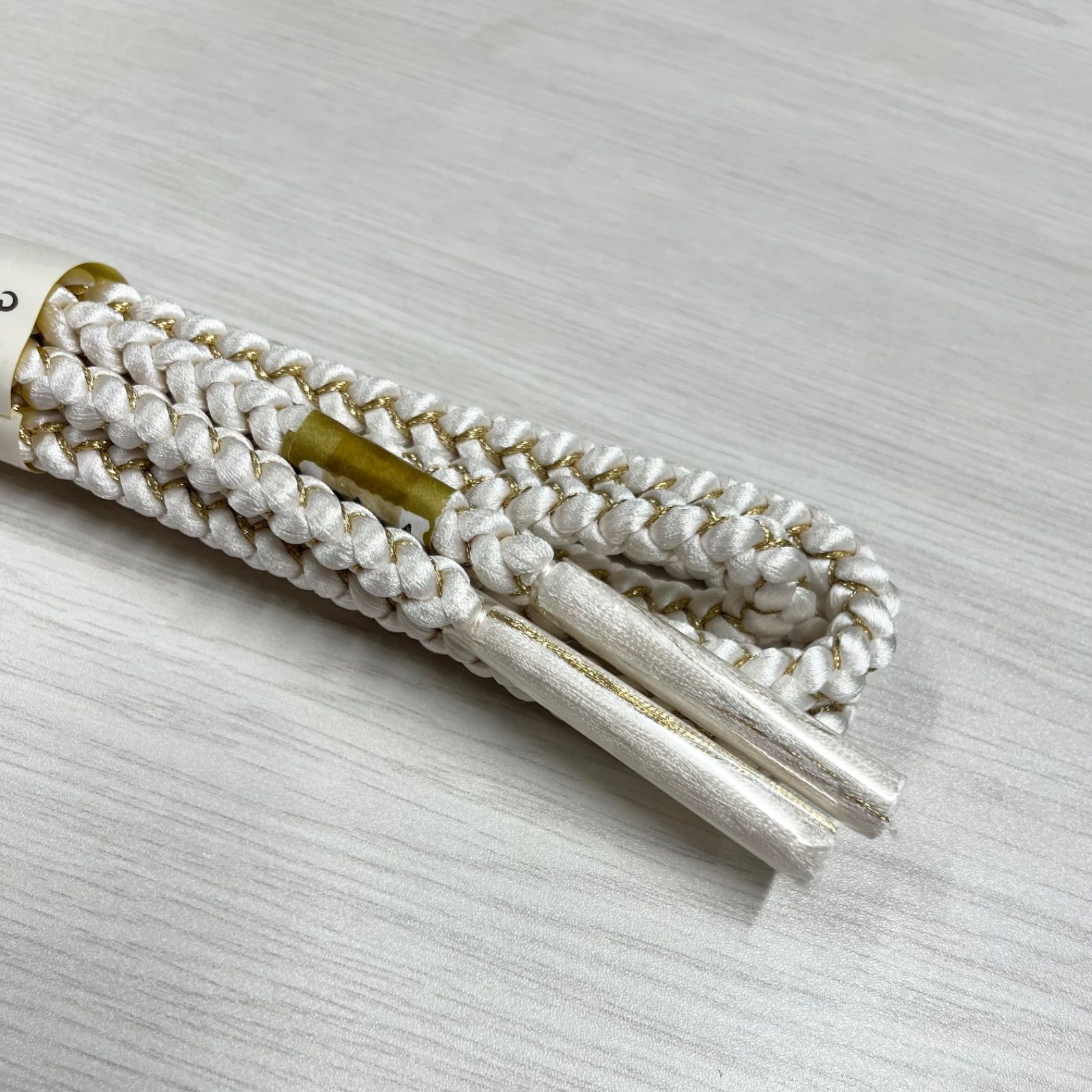 ホワイト ゴールド 帯締め 組紐 くみひも 平組 正絹 絹100% 日本製 振袖 結婚式 卒業式 小紋 紬 着物 晴れ着 浴衣