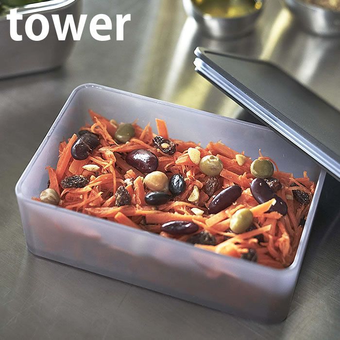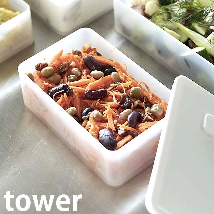 バルブ付き密閉保存容器 タワー tower 密閉 保存容器 電子レンジ対応 食洗器対応 400ml ランチボックス 食品保存 冷蔵 お弁当箱 スタッキング シンプル おしゃれ タワーシリーズ 白 黒 ホワイト ブラック 山崎実業 yamazaki 5518 5519 ヤマジツ