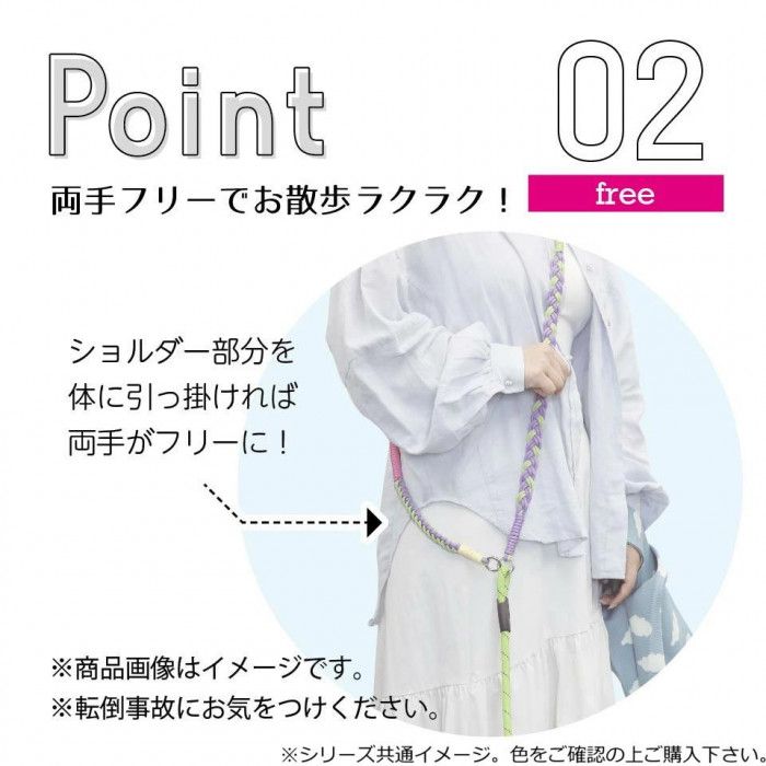 両手がフリーになるからお散歩もラクラクです。愛犬を背中全体で支えることができるショルダーリードです。職人が一つ一つ手編みで編み込んだカラーコードがおしゃれ。反射素材が編み込まれているため、暗い夜道でのお散歩も安心です。適用体重約25kgまで、小~中型犬用です。