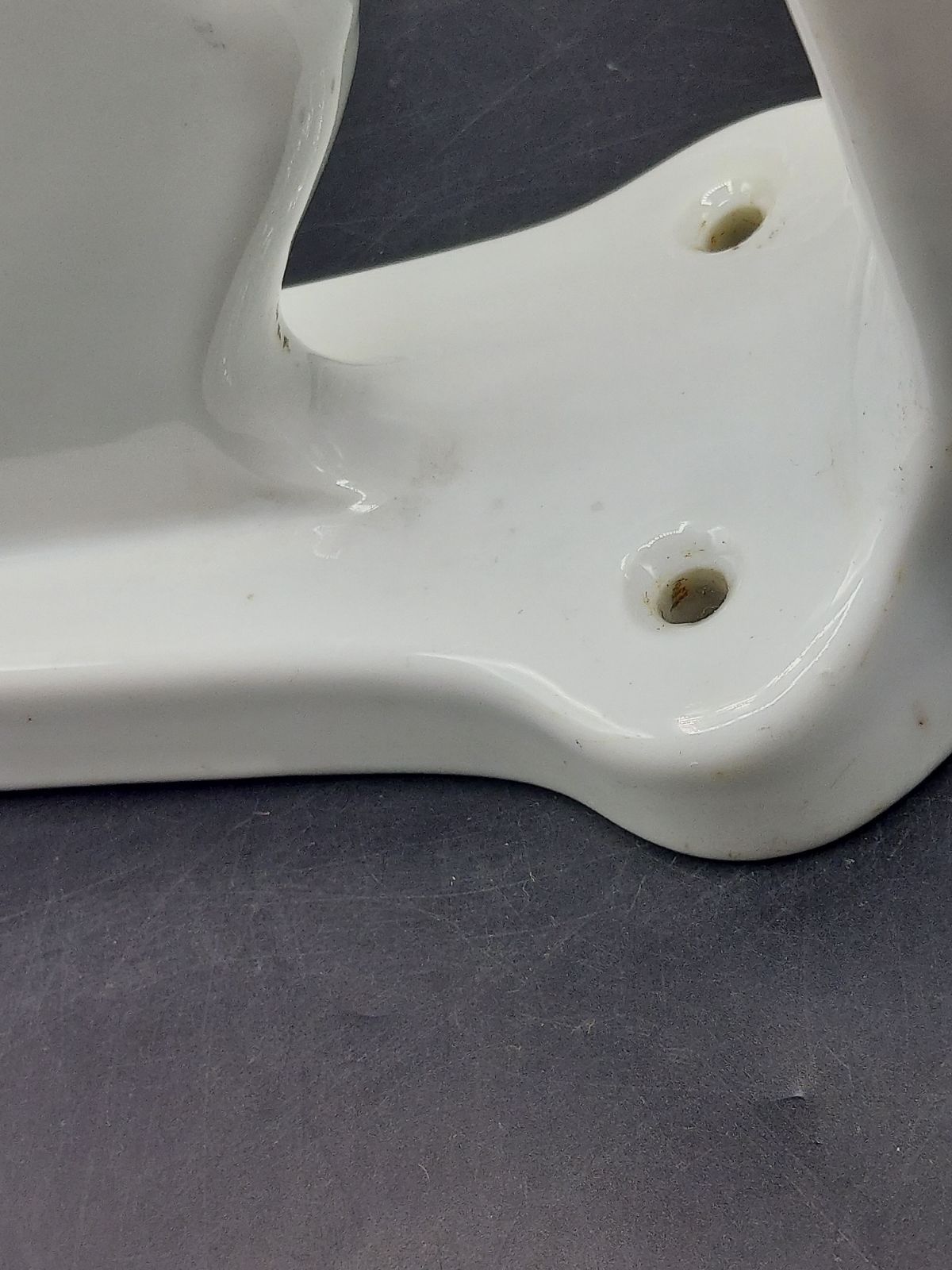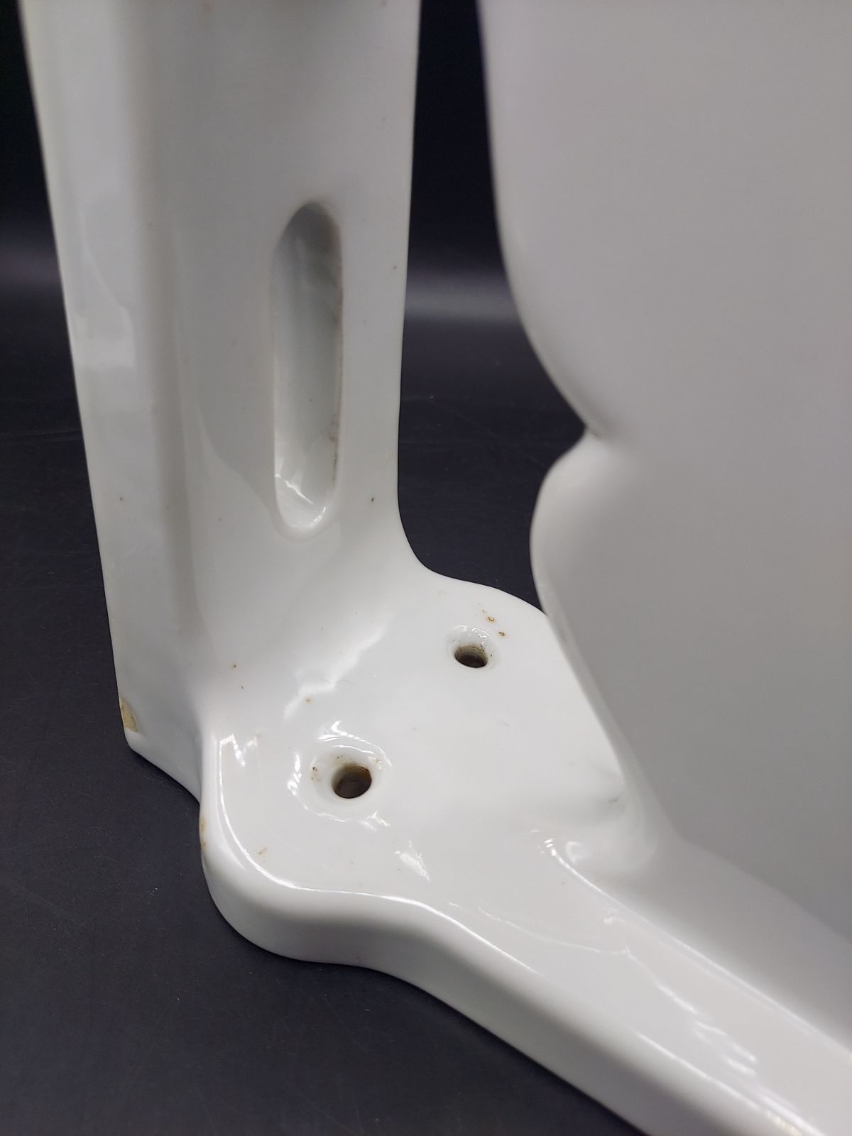 中古品のため、若干の汚れや擦れ、棚を受ける部分の面に接着跡があります。