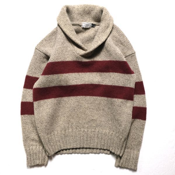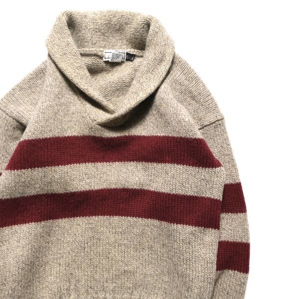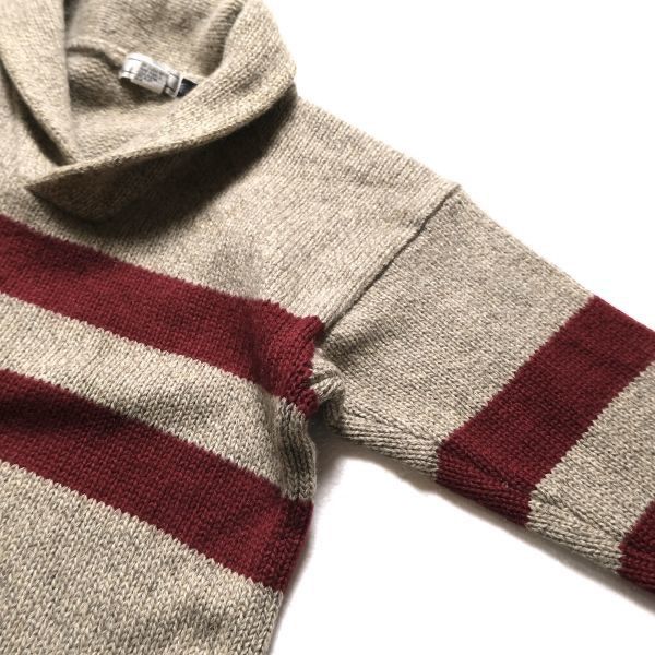 こちらのブランドではあまり見かけないショールカラーニットです。
