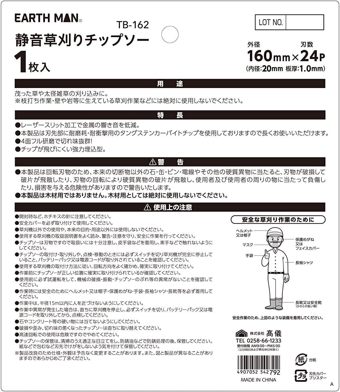 髙儀(Takagi) EARTH MAN 静音草刈りチップソー ホワイト 160mm×24P TB-162