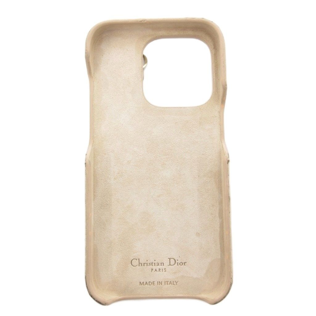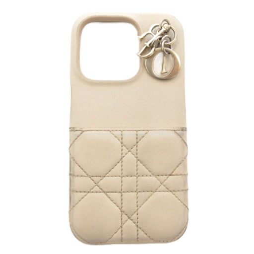 【商品名】クリスチャンディオール Christian Dior iPhone14Proケース ベージュ キルティング レザー ロゴチャーム付 /GV