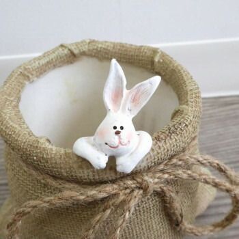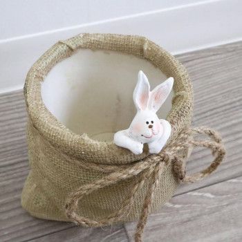 小さなうさぎが中から覗いている可愛いプランター(鉢カバー)です。お気に入りのお花をポットごと直接入れたり、造花を飾ってお部屋を素敵に演出できます。大きさも小さく場所もとりません。お部屋の中、玄関、ベランダとあらゆる所で大活躍のインテリア小物です。