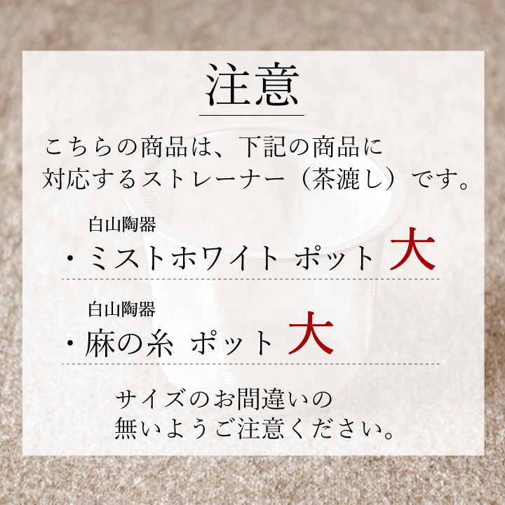 ストレーナー 7970 白山陶器 ミストホワイト ポット 大 ・ 麻の糸 ポット 大 対応 クッチーナ 茶漉し 茶こし 急須 ティーポット ポット 紅茶 お茶 日本製 ステンレス おしゃれ かわいい キッチン 雑貨 ギフト プレゼント