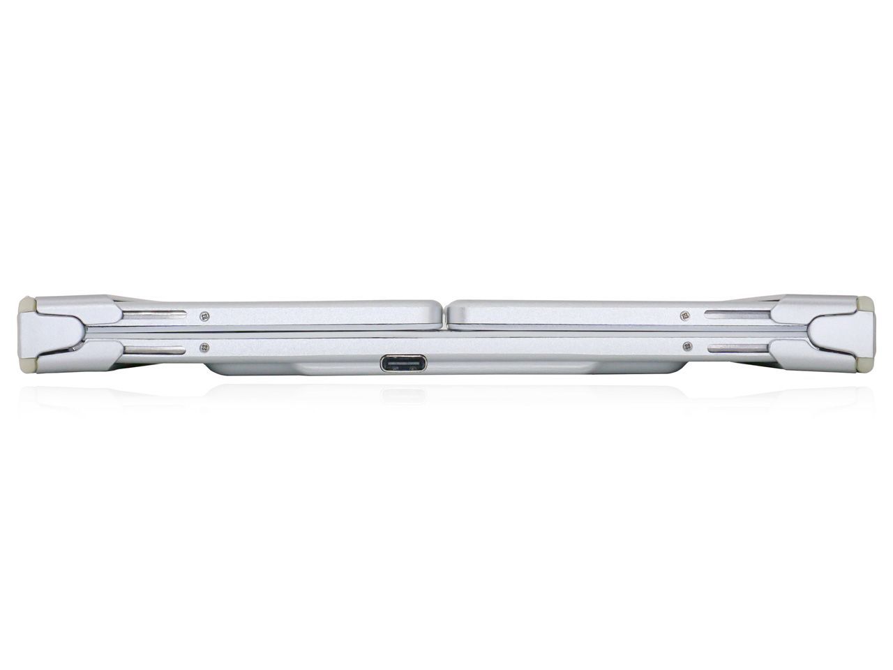 3つ折り構造で、2つ折り型のようにスペースキーが2つに分かれたりキーサイズが極端に崩れたりしない。キースイッチタイプはパンタグラフ。