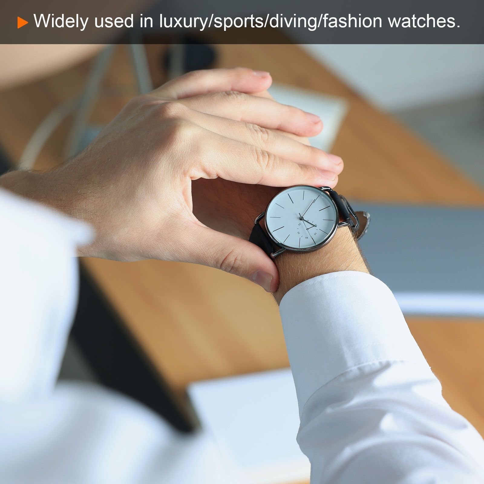 素材 - 品質の高いサファイア水晶ガラス製のウォッチレンズは、優れた硬度と耐スクラッチ性を提供し、耐久性があり長持ちします。サファイアの硬度試験は9で、ダイヤモンドに次ぐものです。フラットなラウンドサファイアガラスは滑らかな表面を持ち、時計に洗練された雰囲気を加えます。