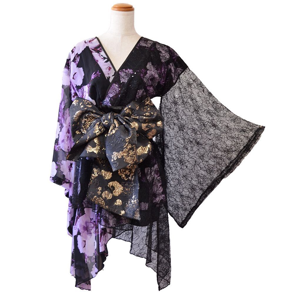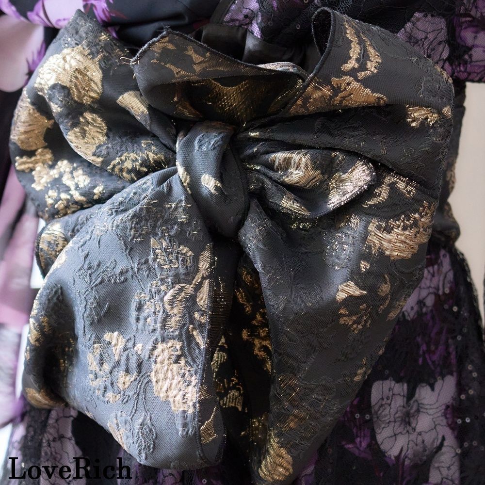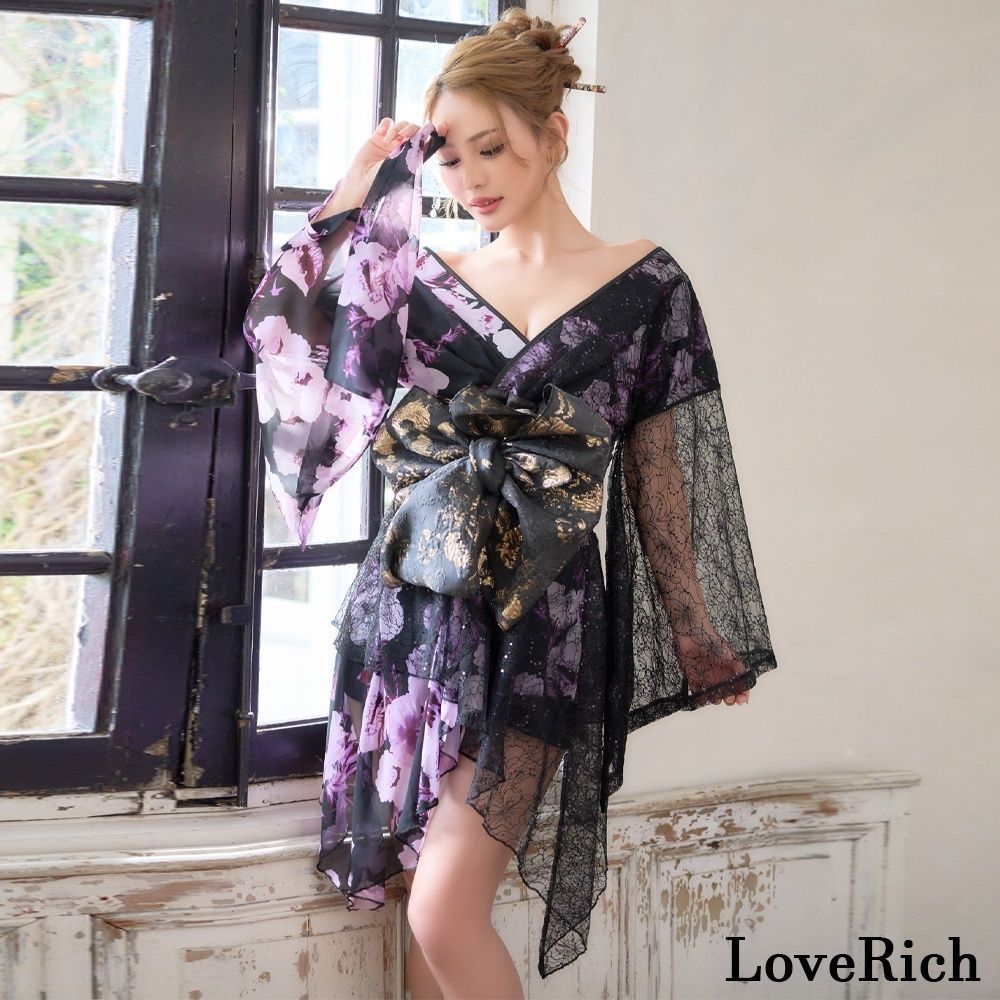 艶花スパンコールレース 花柄 シフォン ミニ 豪華 帯 花魁 着物 ドレス コスプレ ハロウィン キャバドレス [1558]