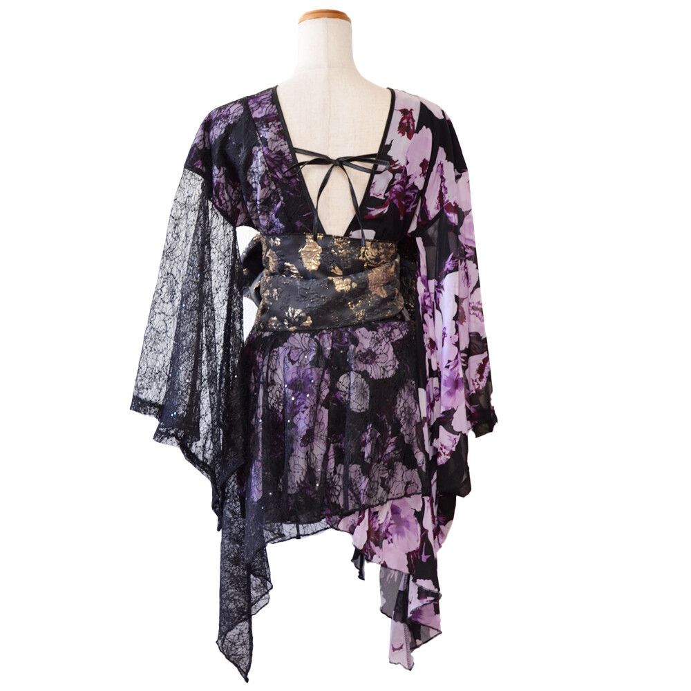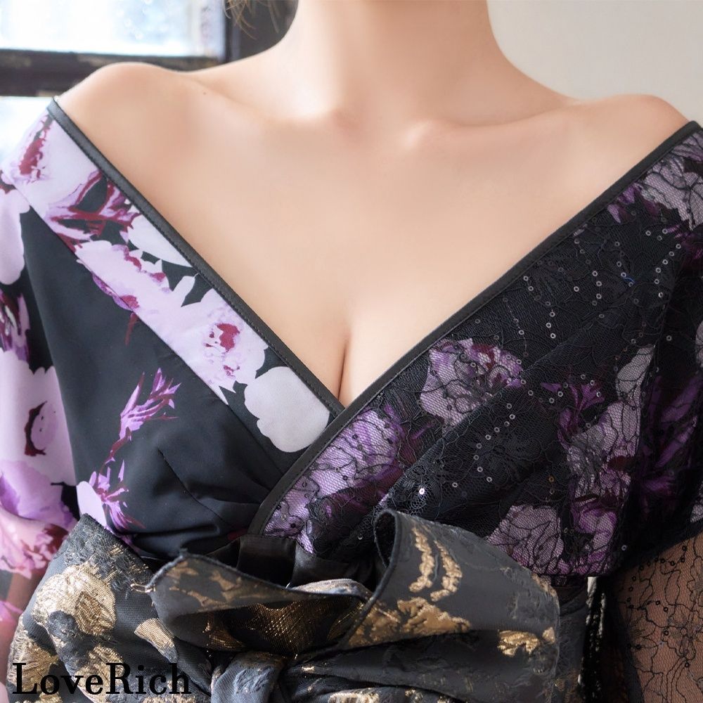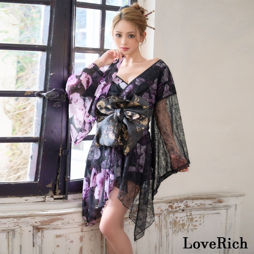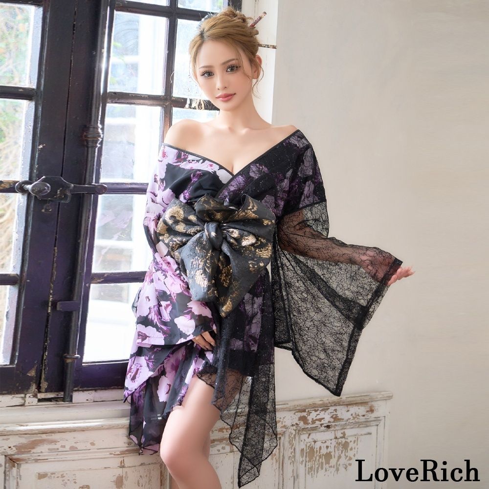艶花スパンコールレース 花柄 シフォン ミニ 豪華 帯 花魁 着物 ドレス コスプレ ハロウィン キャバドレス [1558]
