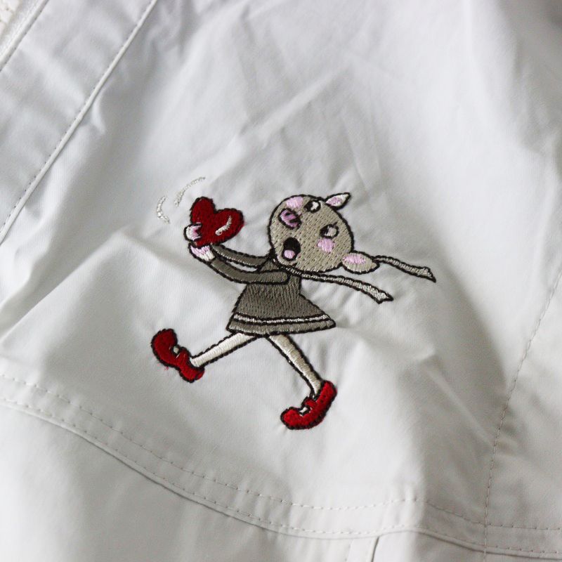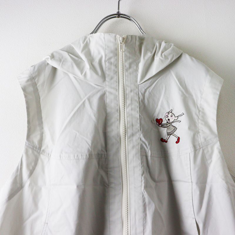 【品名】未使用 アルベロベロ オレボレブラ ALBEROBELLO OLLEBOREBLA ぶたさん刺繍ワッペンフードロングベスト M|アイボリー