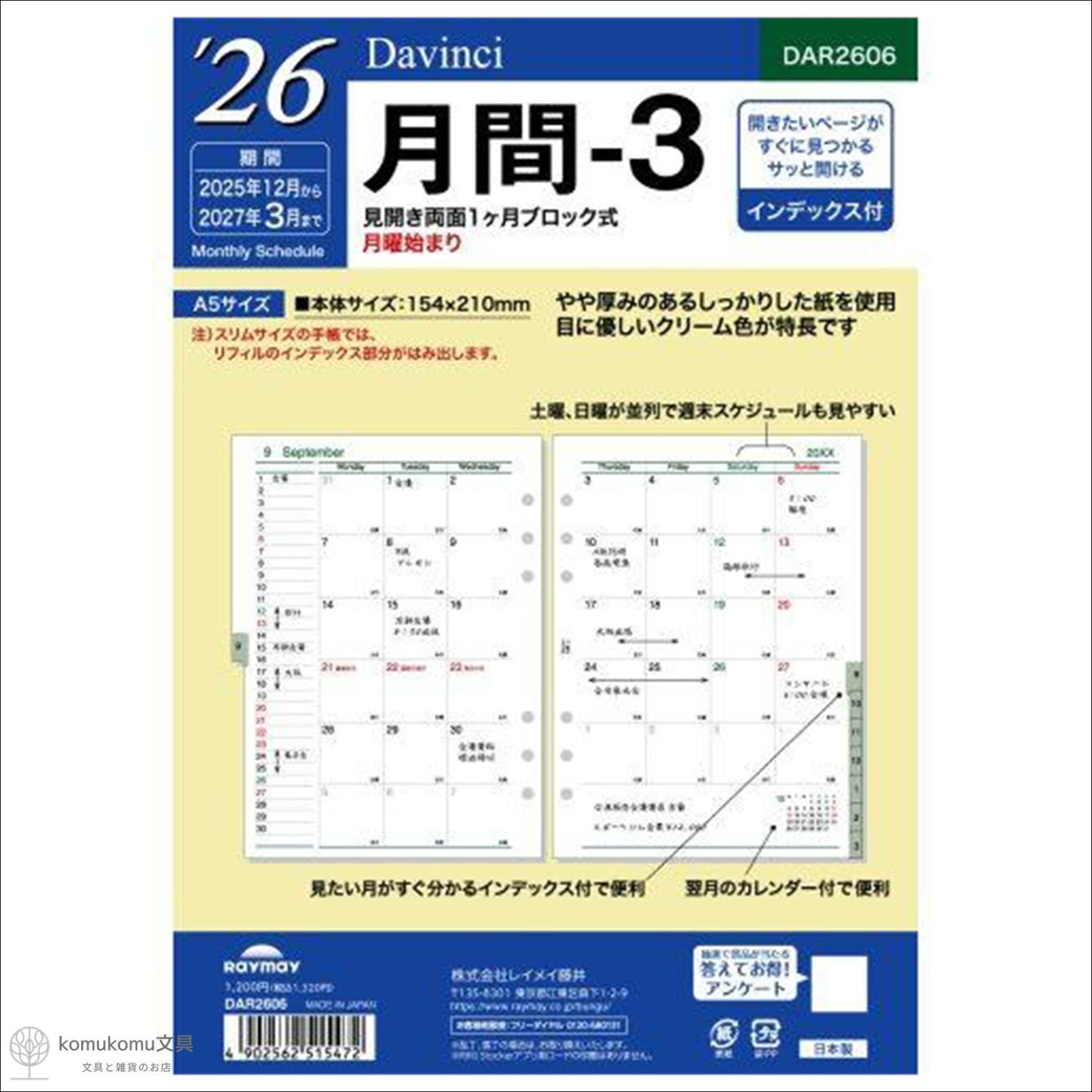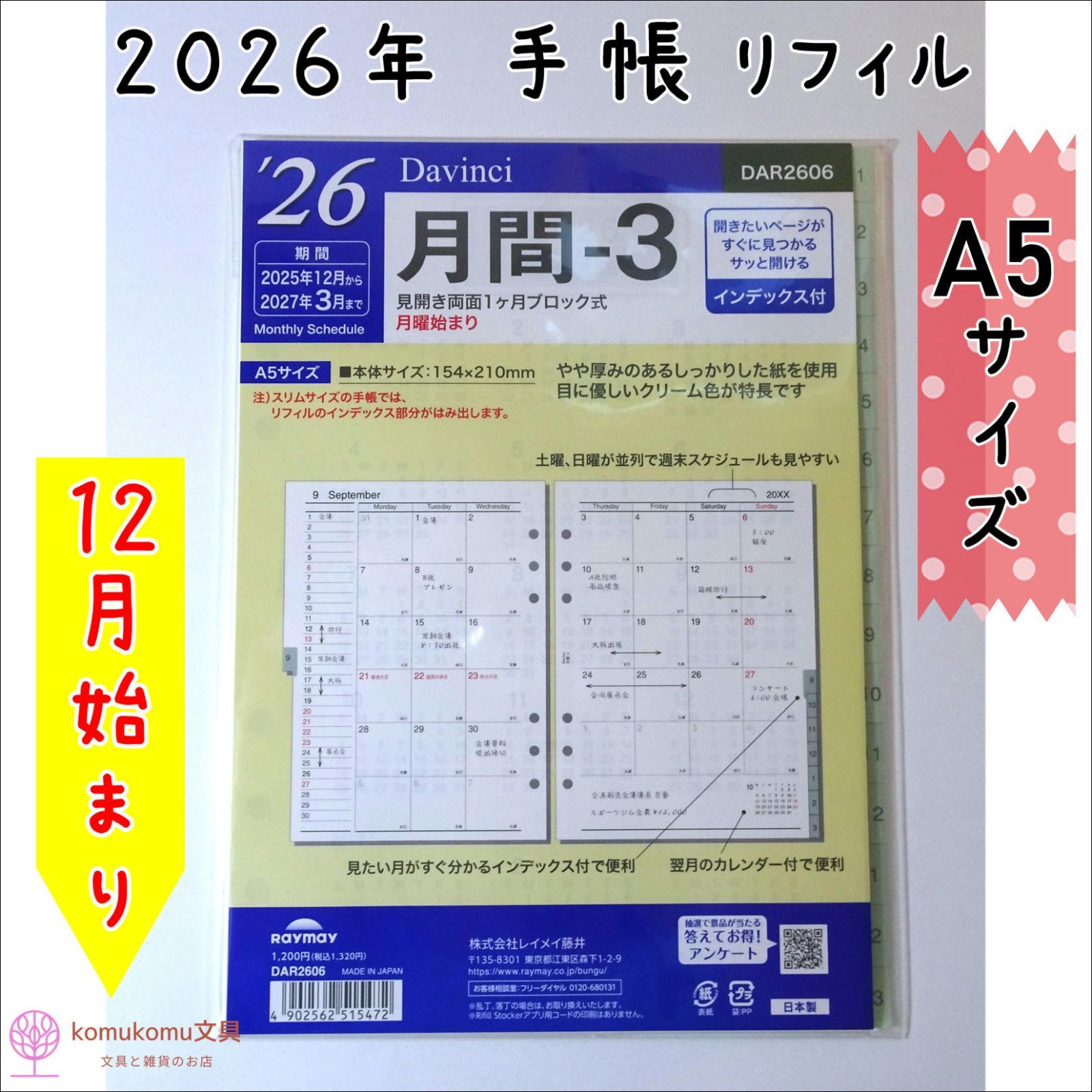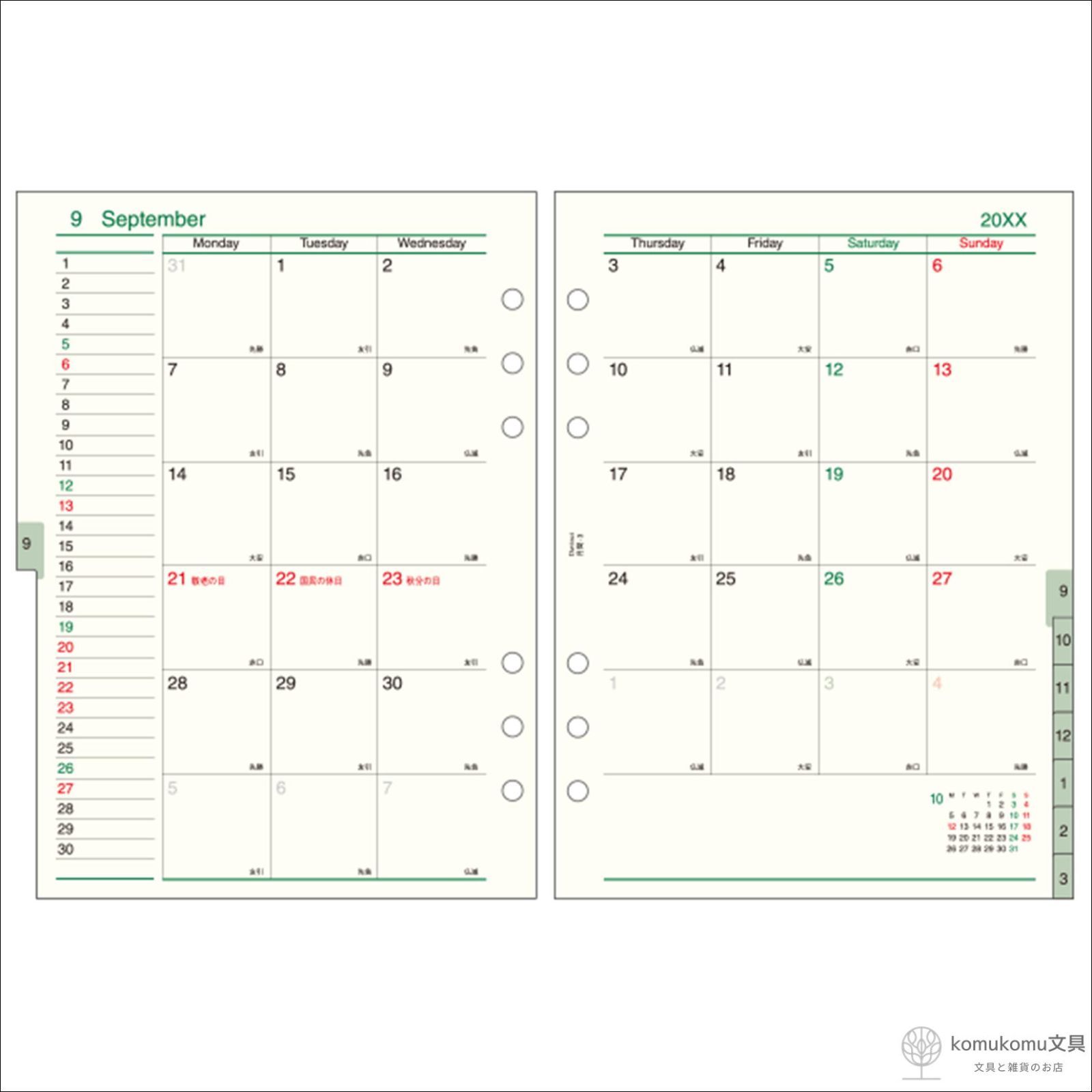 仕様:見開き両面1ヶ月ブロック式・月曜始まり・インデックス付