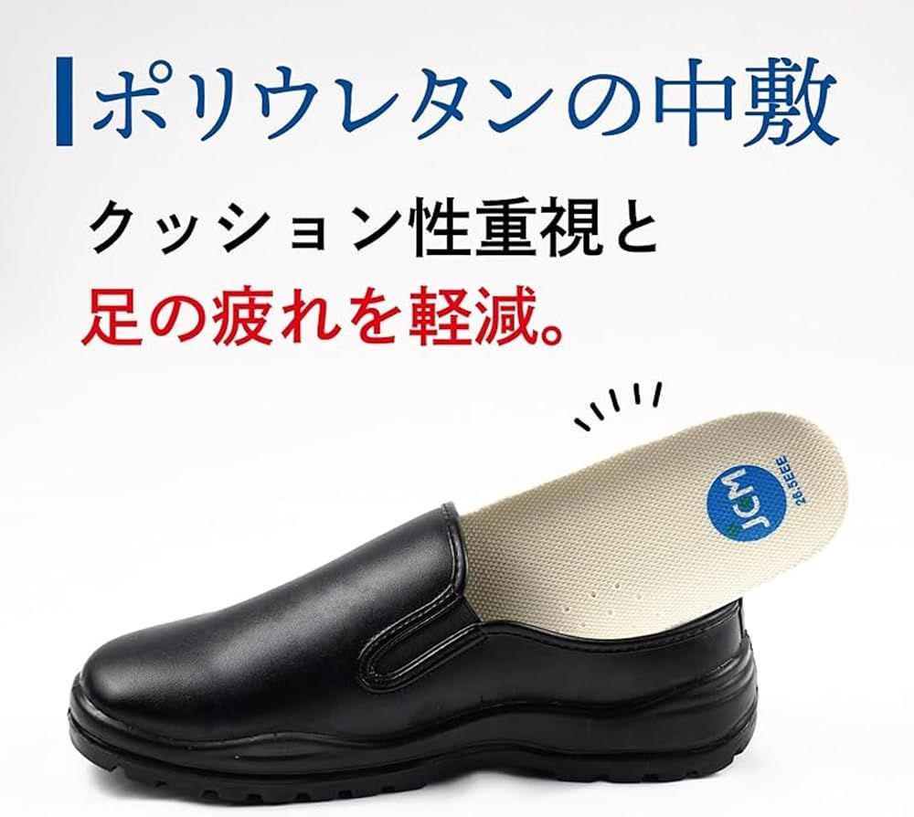 [ジェーシーエム] コックシューズ 厨房シューズ 厨房靴 耐滑 撥水 耐油 軽量 耐摩耗 クッション 性 幅広 3E 調理場 疲れにくい 幅広3E スリッポン 飲食店 キッチン ホール