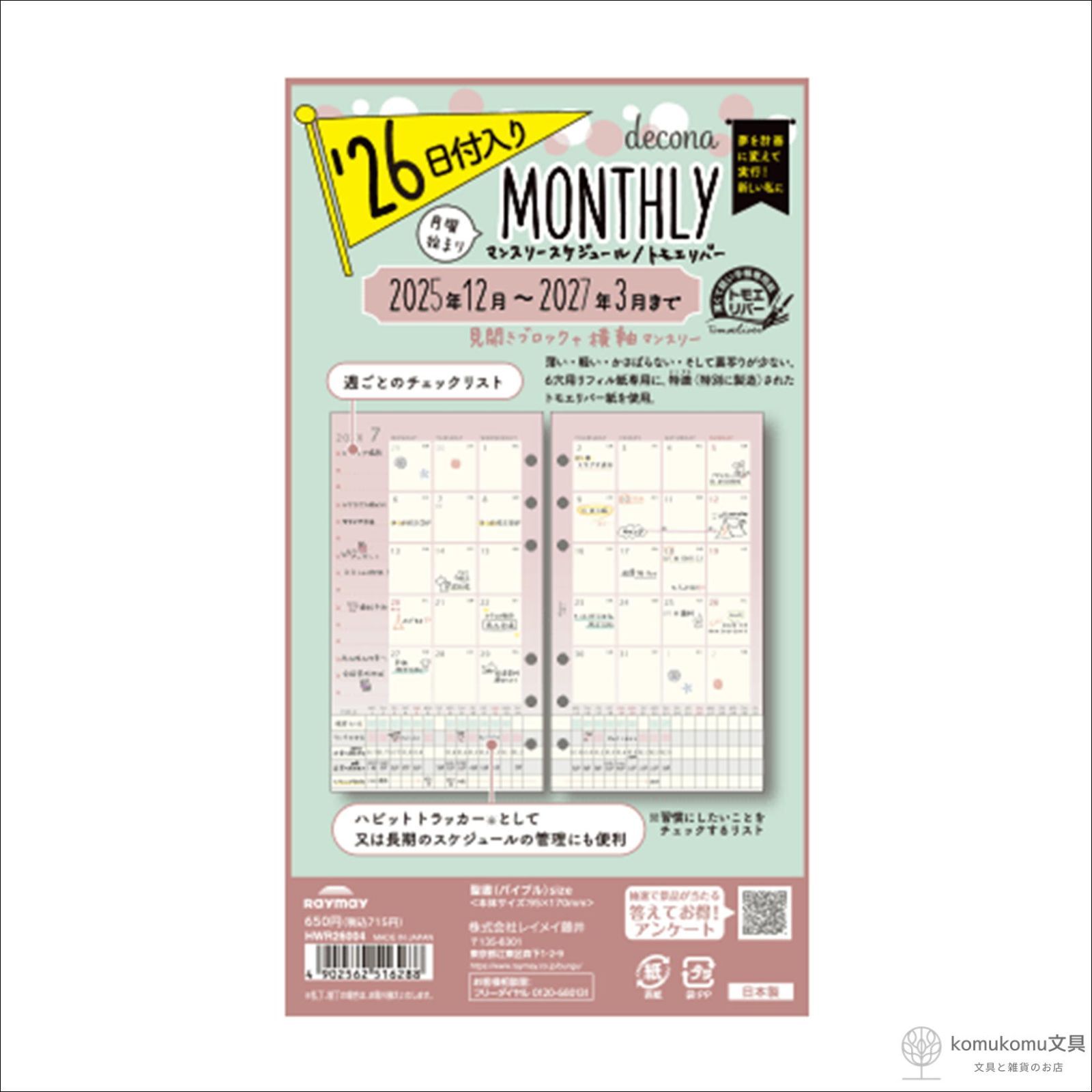 仕様:見開きブロック+横軸マンスリー