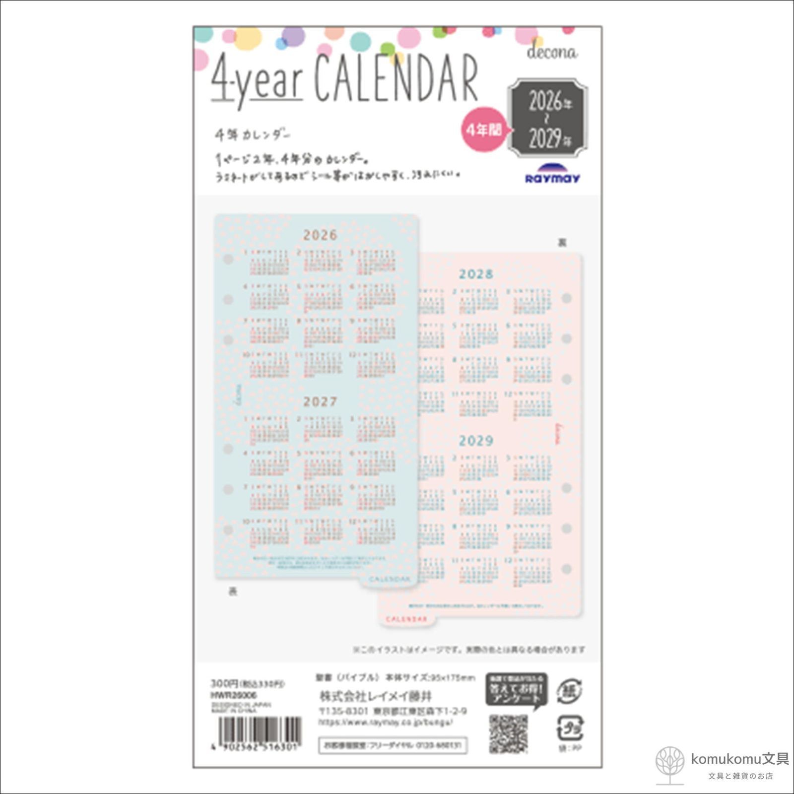 『デコナ リフィル 聖書サイズ 2026~2029年 4年カレンダー』