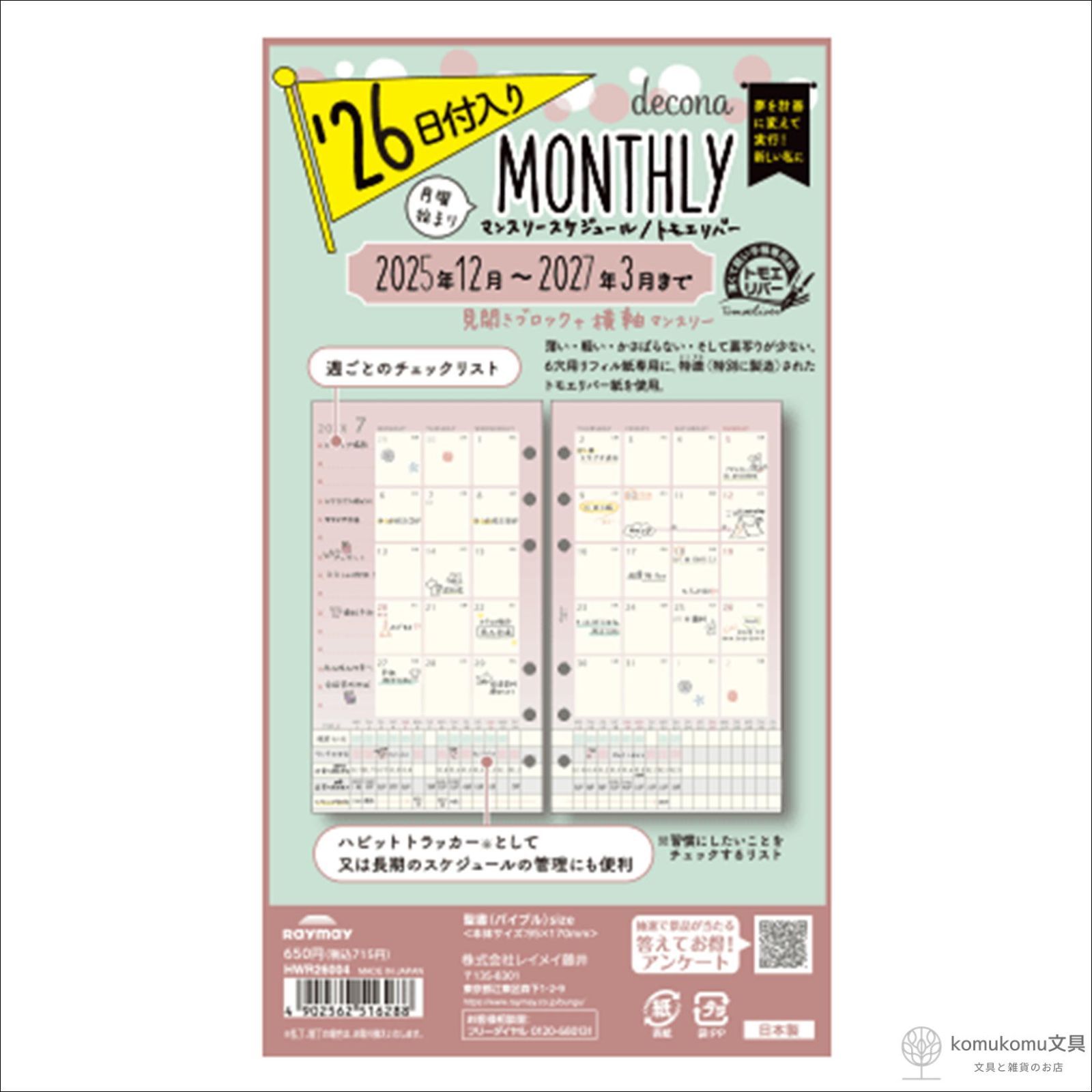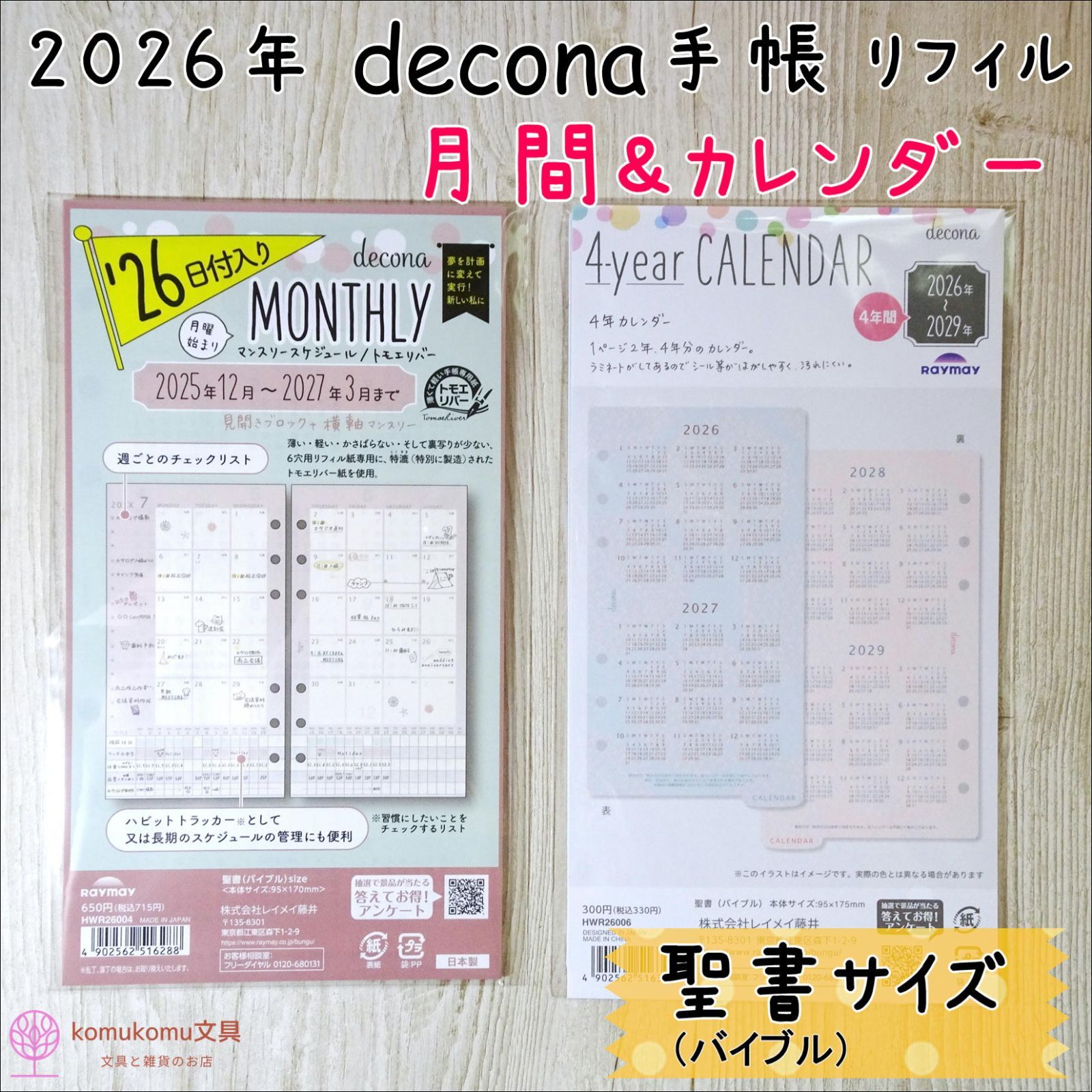 『デコナ リフィル 聖書サイズ 2026年日付入 月間-1』