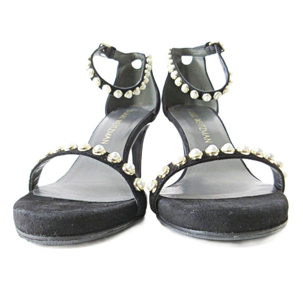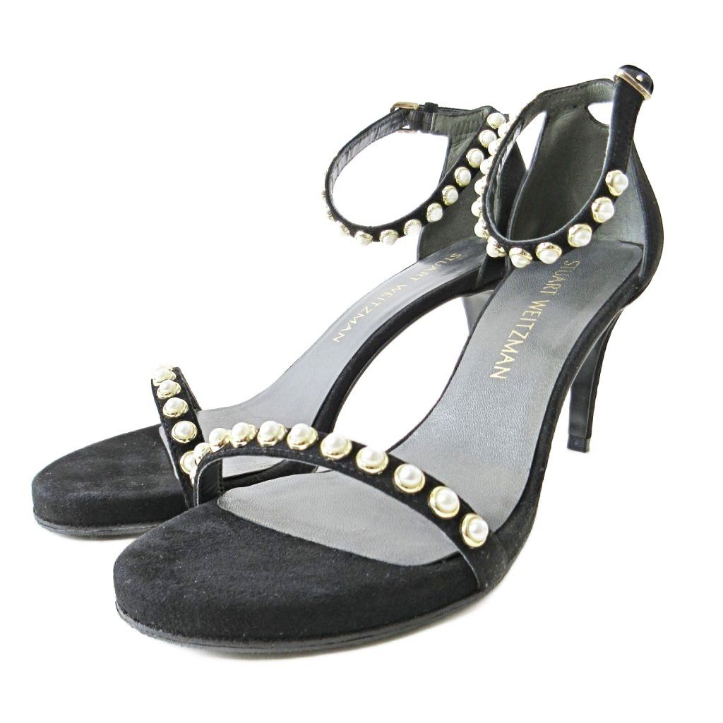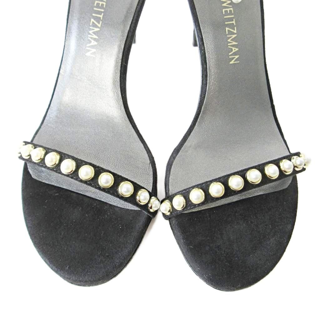 【商品名】スチュアートワイツマン STUART WEITZMAN 美品 パールビジュー サンダル アンクルストラップ スウェード ピンヒール 36.5 23.5cm ブラック 黒 1020 IBO81