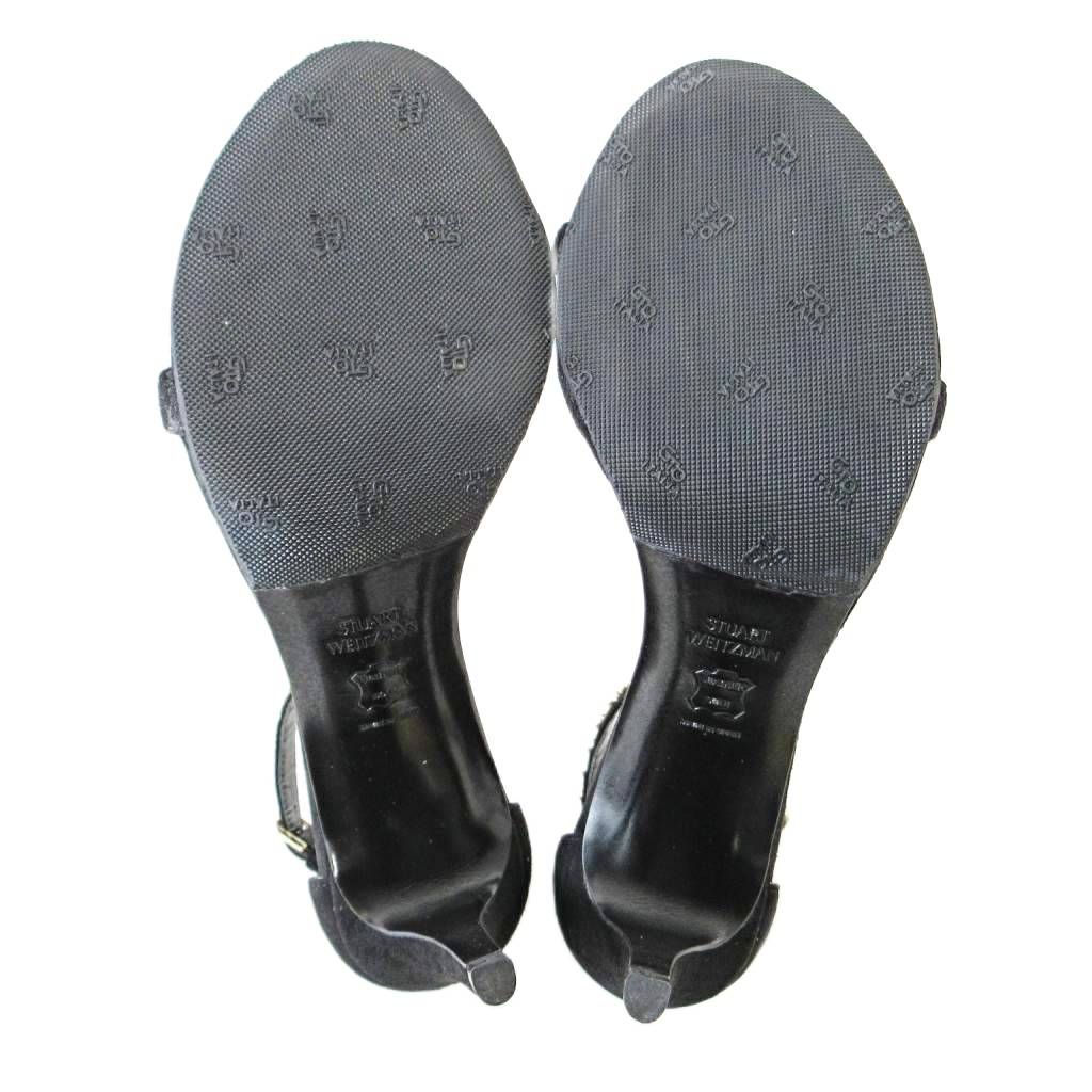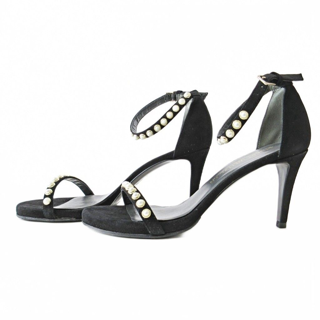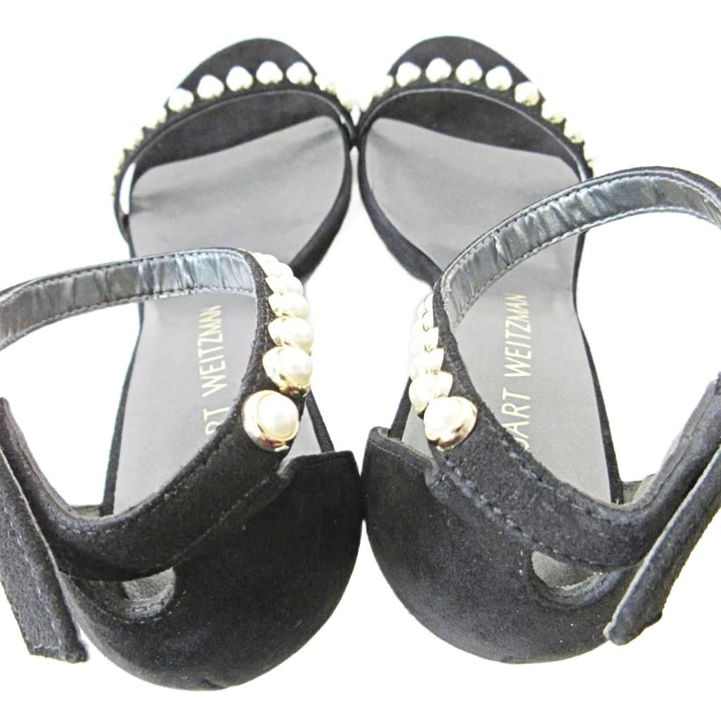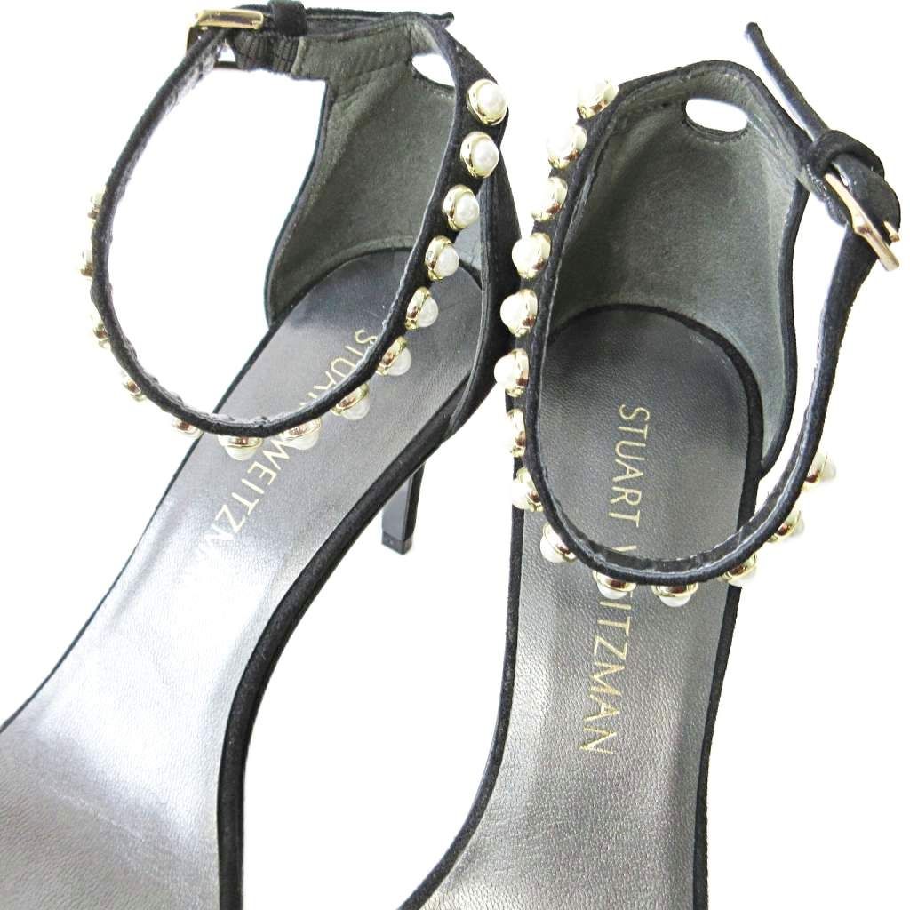 【商品名】スチュアートワイツマン STUART WEITZMAN 美品 パールビジュー サンダル アンクルストラップ スウェード ピンヒール 36.5 23.5cm ブラック 黒 1020 IBO81