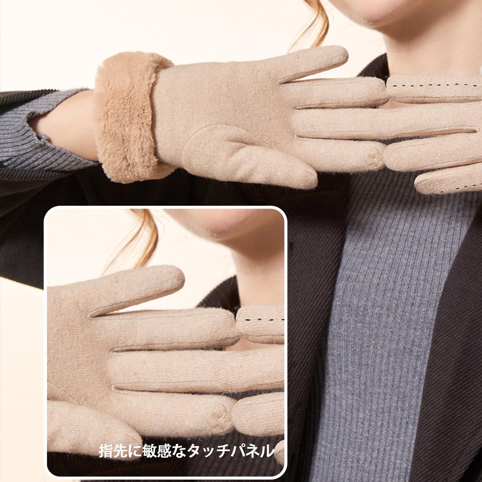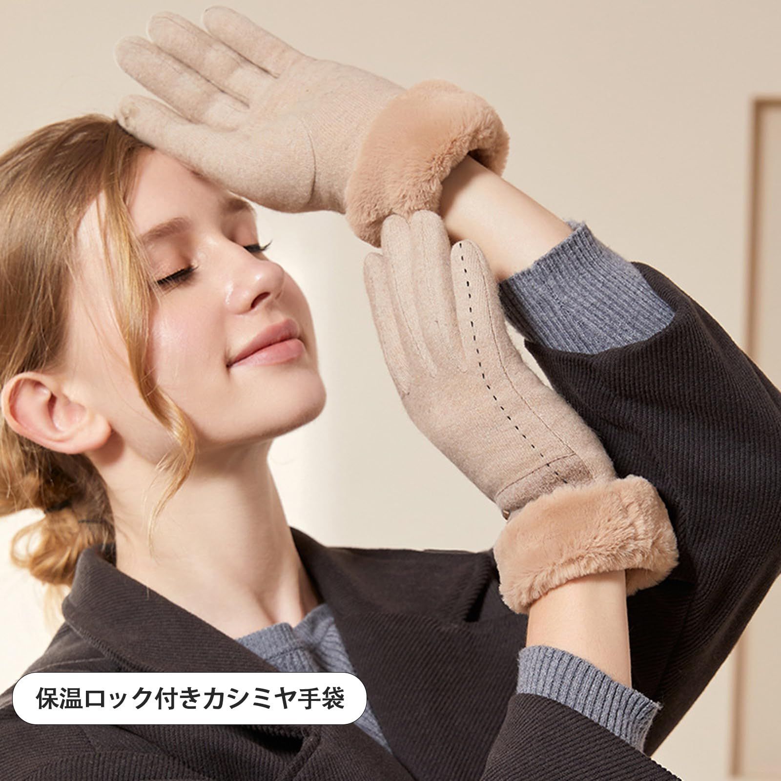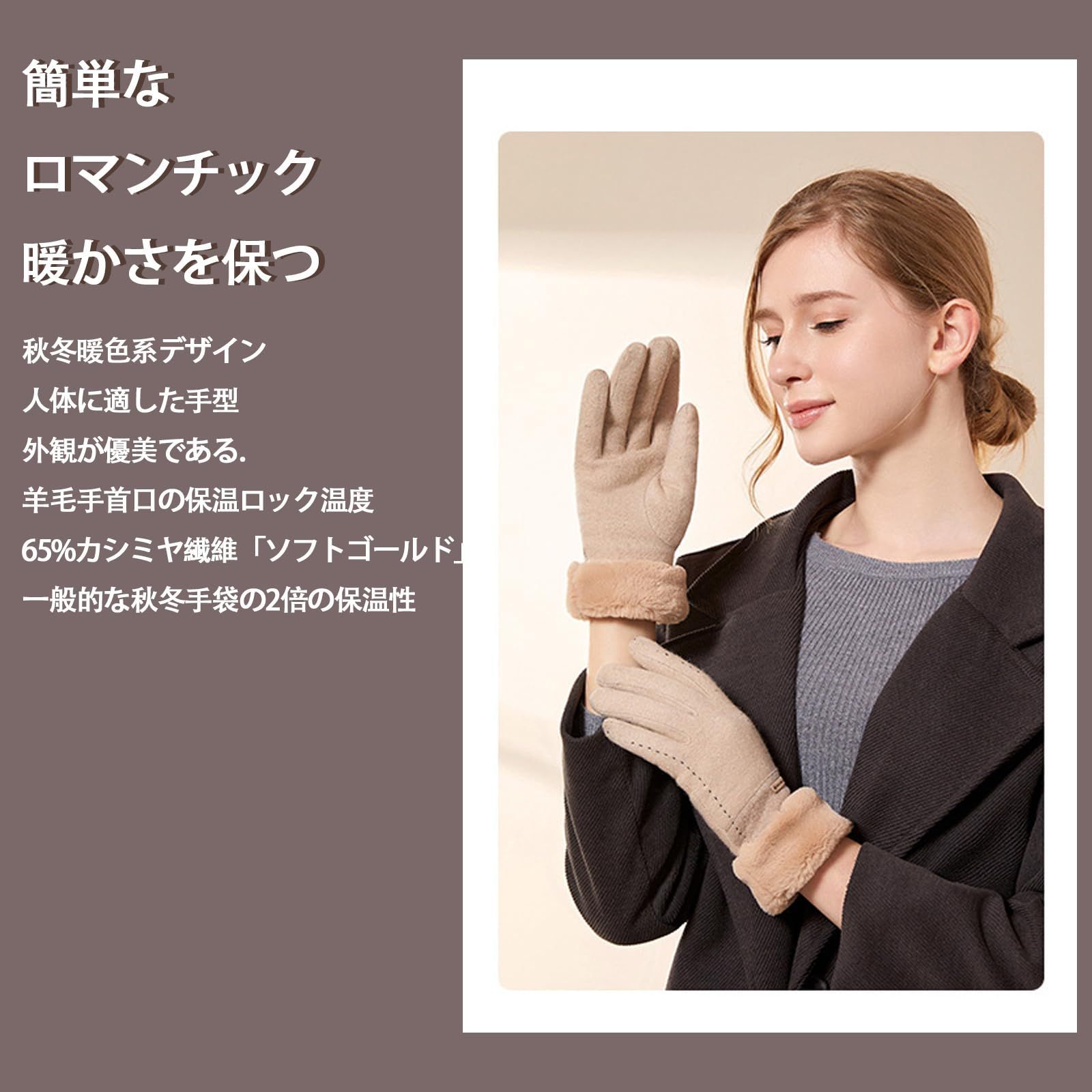 【美しいファッション】デザインがスタイリッシュで、色がシンプルでスタイリッシュで、優しい色合いで、冬にぴったりで、さまざまなコーディネートに適しています。カシミヤ手袋は防寒保温性、防風性、伸縮性に優れている!家族や友人、彼女へのプレゼントとして強くおすすめします。●商品の色は照明の関係で実物と少し異なる場合があります。