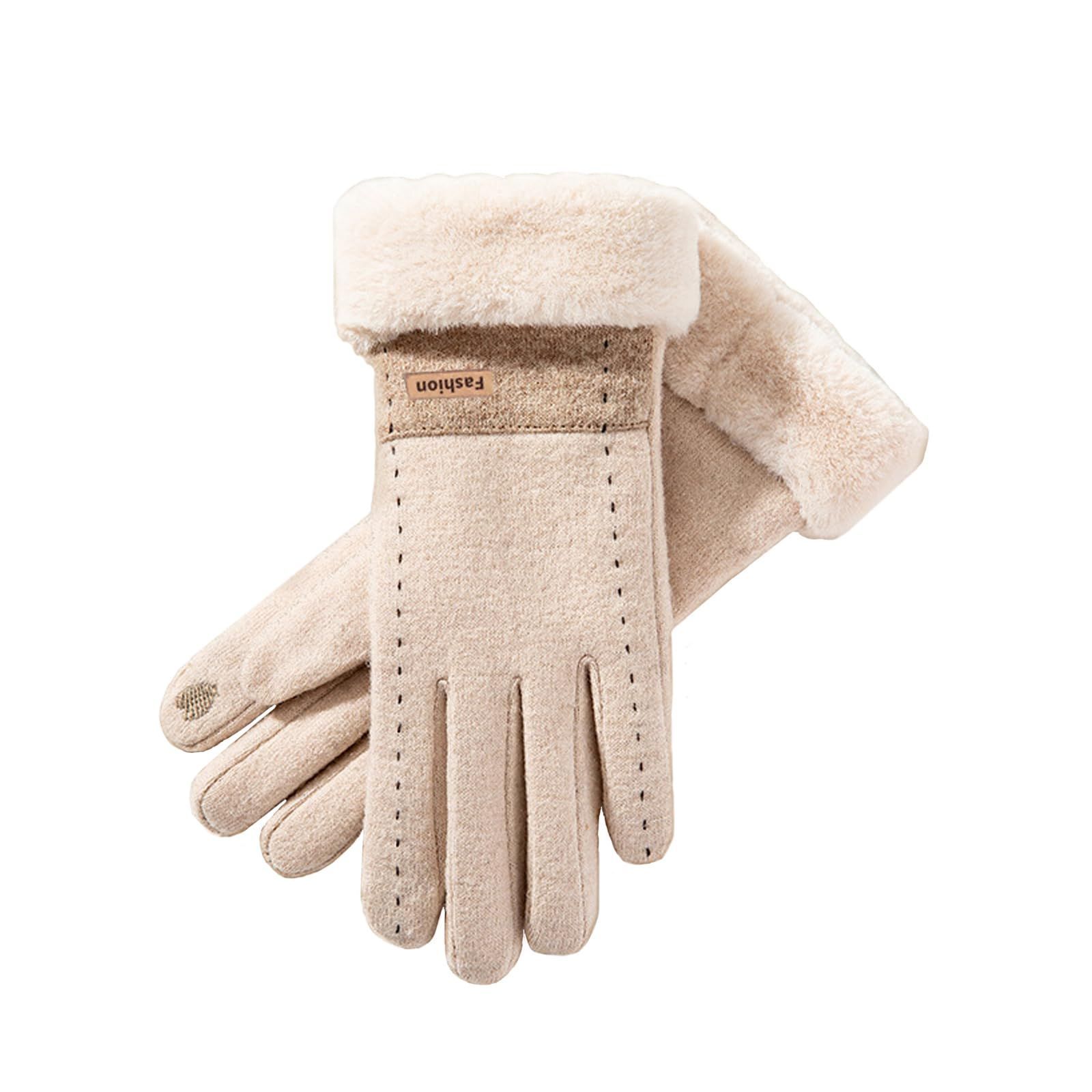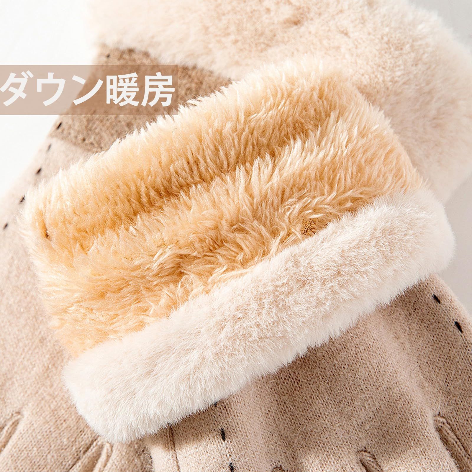[Akkerds] レディース手袋 冬 防寒 保温 ふんわり 厚手 防風 柔らかさ ファッション カシミヤ ダウン厚手 カーキ