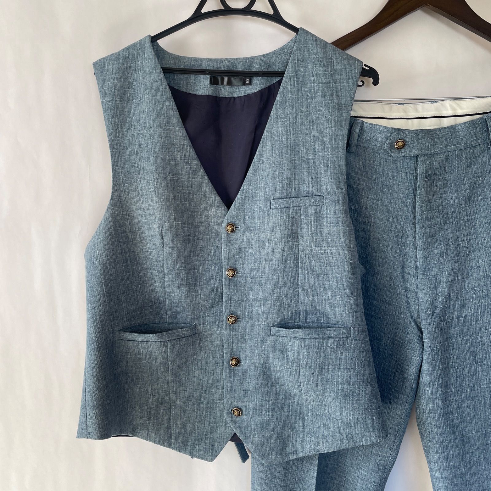 デニムのような生地です。リネンとコットンなので高級感あります。ヴィンテージ archive