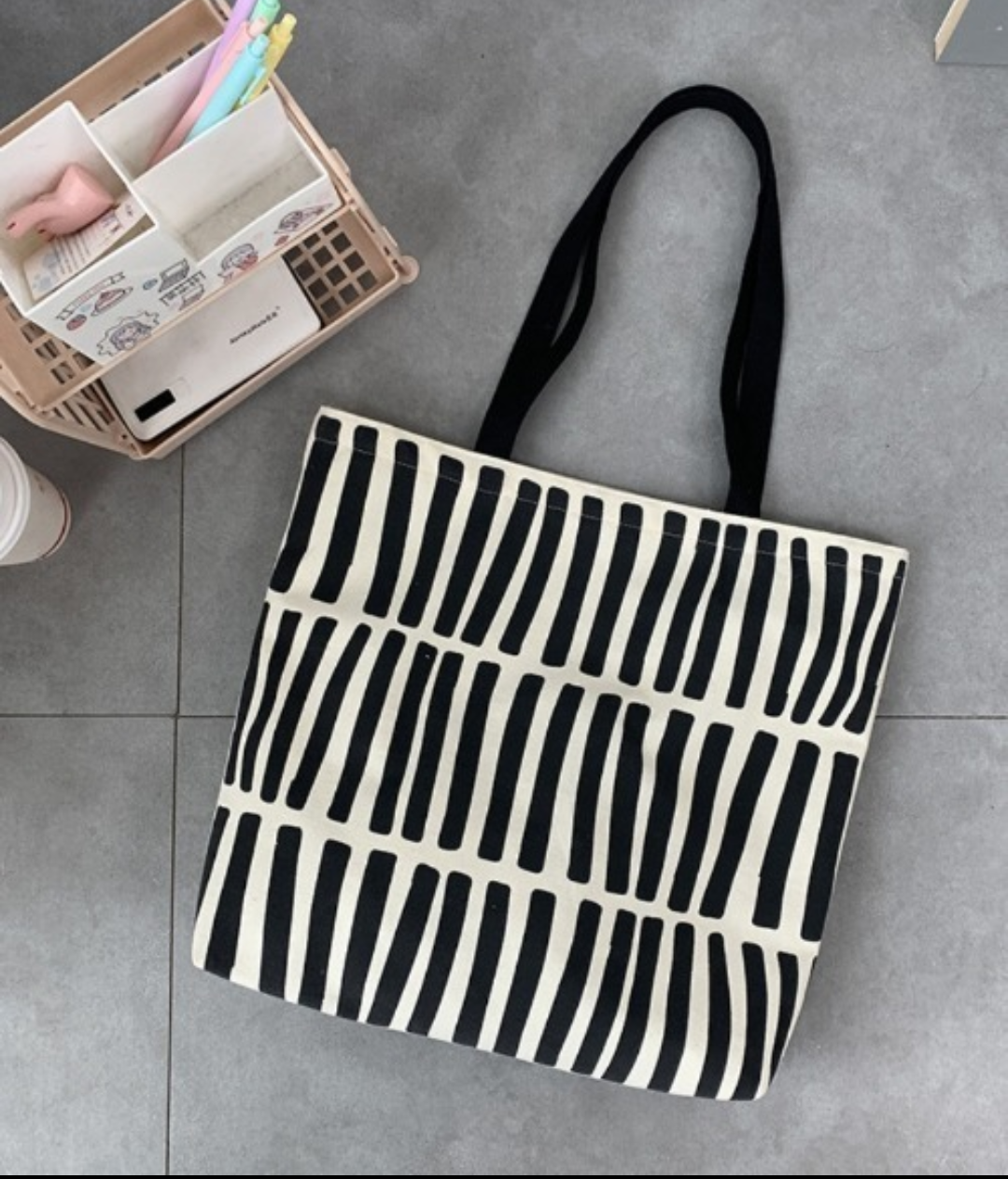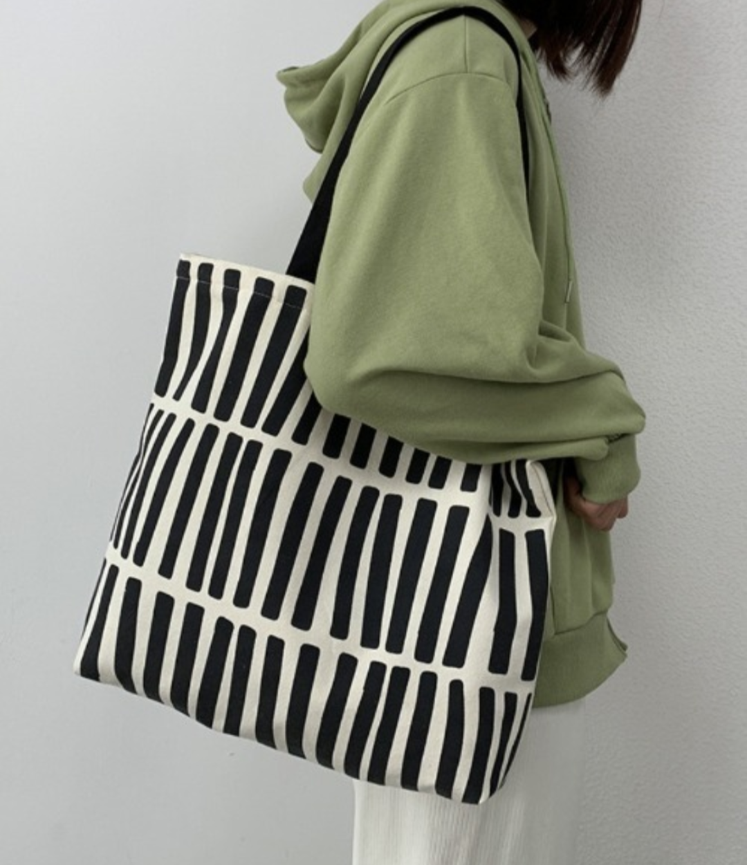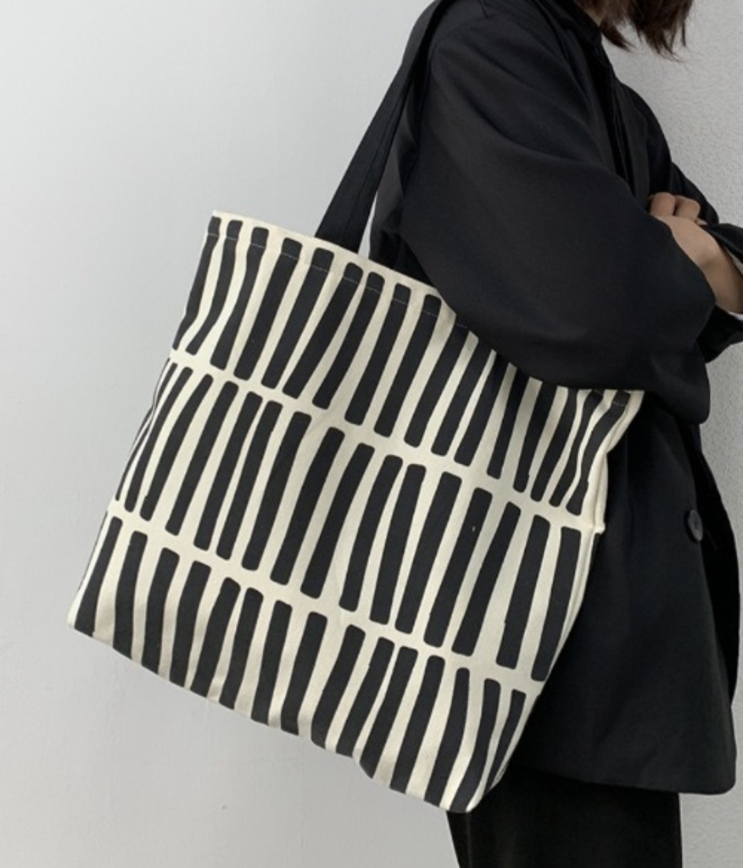 モノトーンのストライプ柄が目を引く、上品でおしゃれなキャンバストートバッグの登場です。