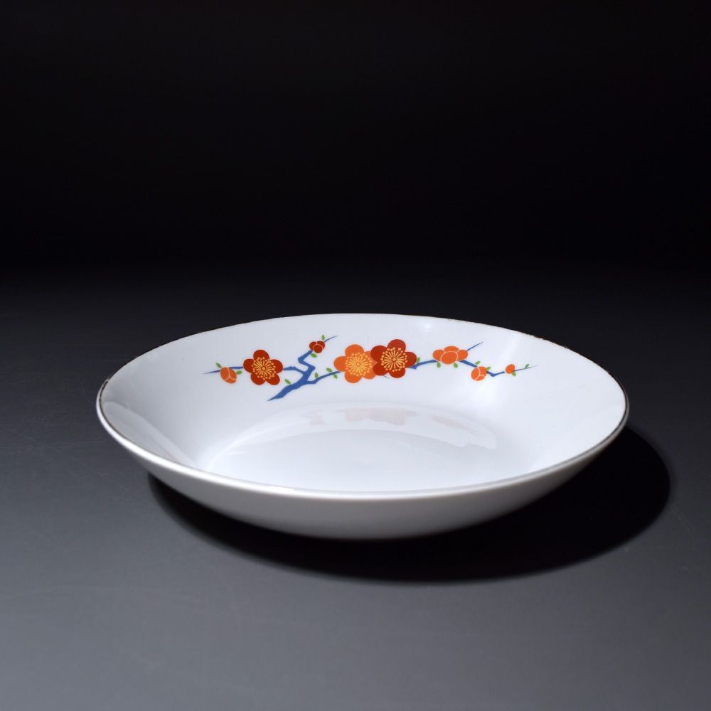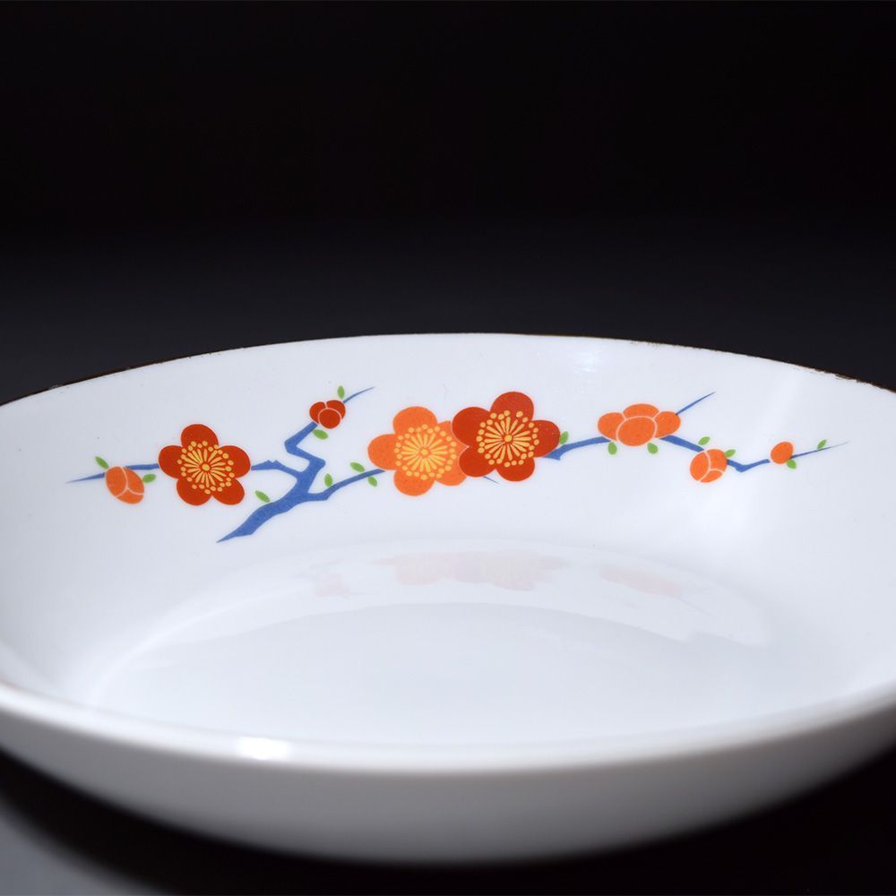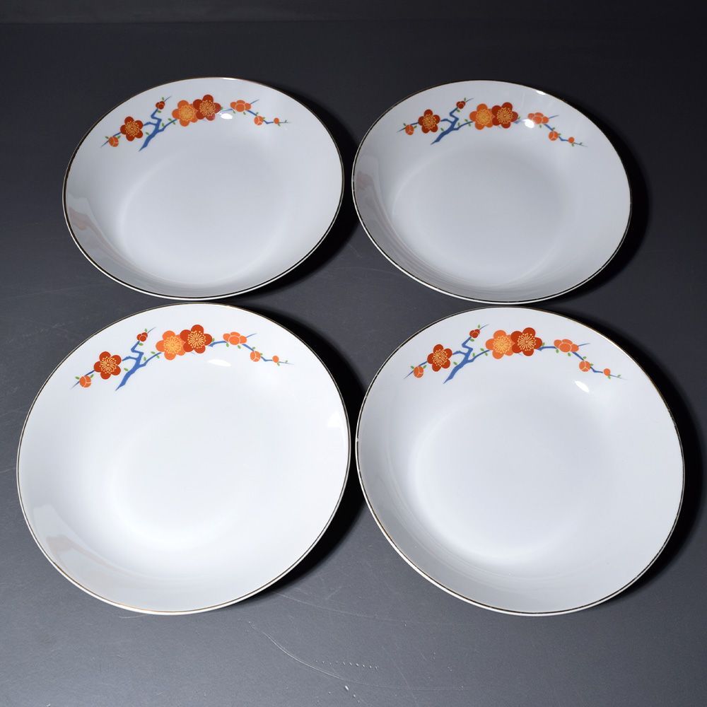 梅の花の装飾が施された深川製磁のボウル4客セット。