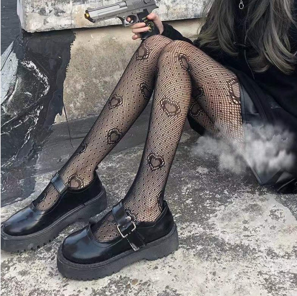 柄 ストッキング タイツ ハート リボン 地雷 韓国 美脚 病みかわ パンク コスプレ