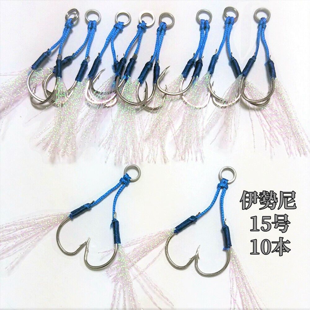 ◆伊勢尼ダブルアシストフック【ティンセル付】15号 10本セット