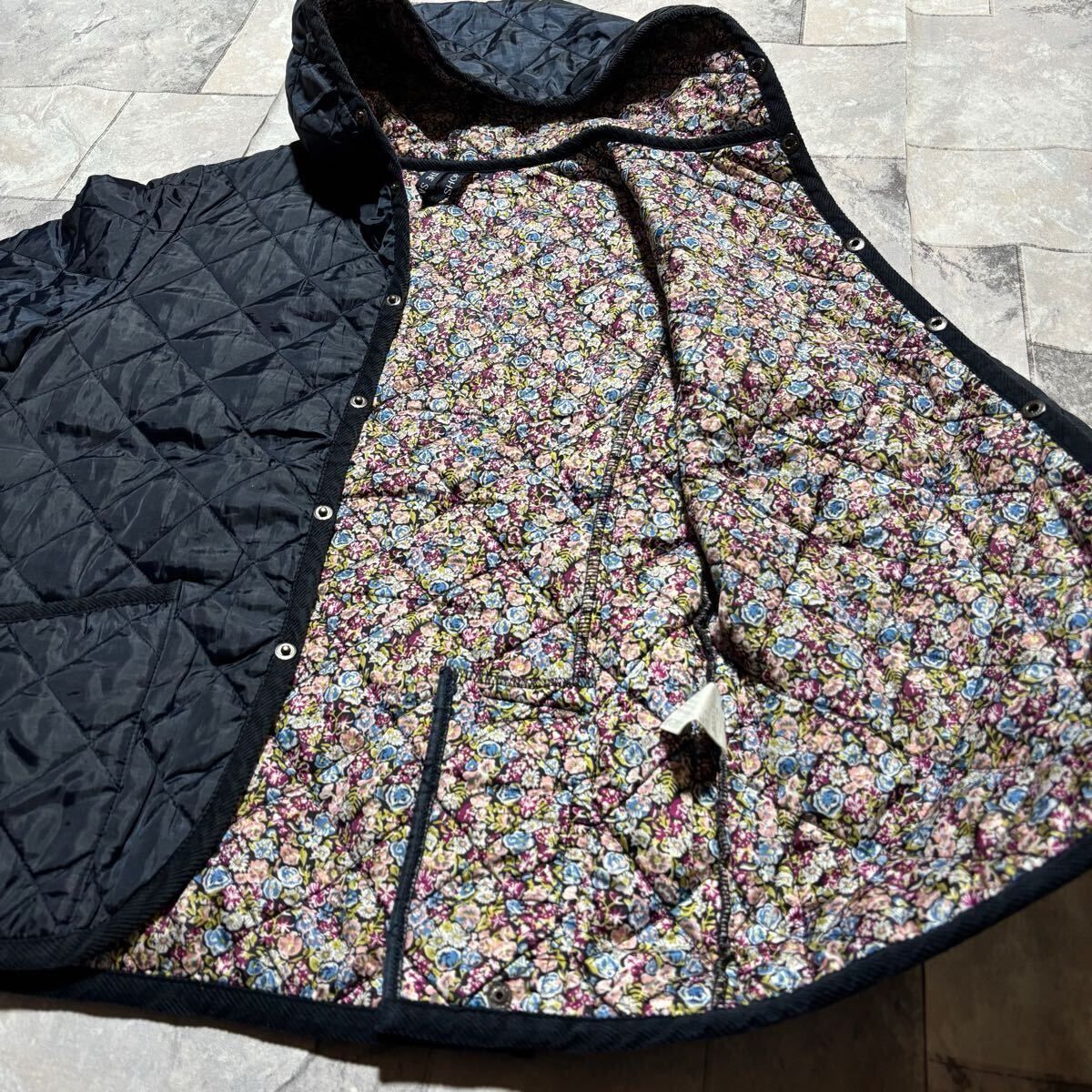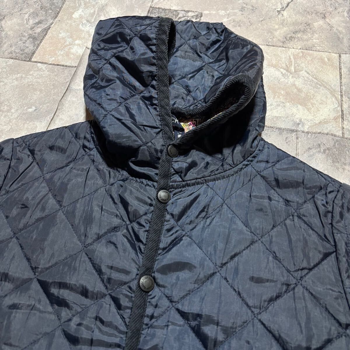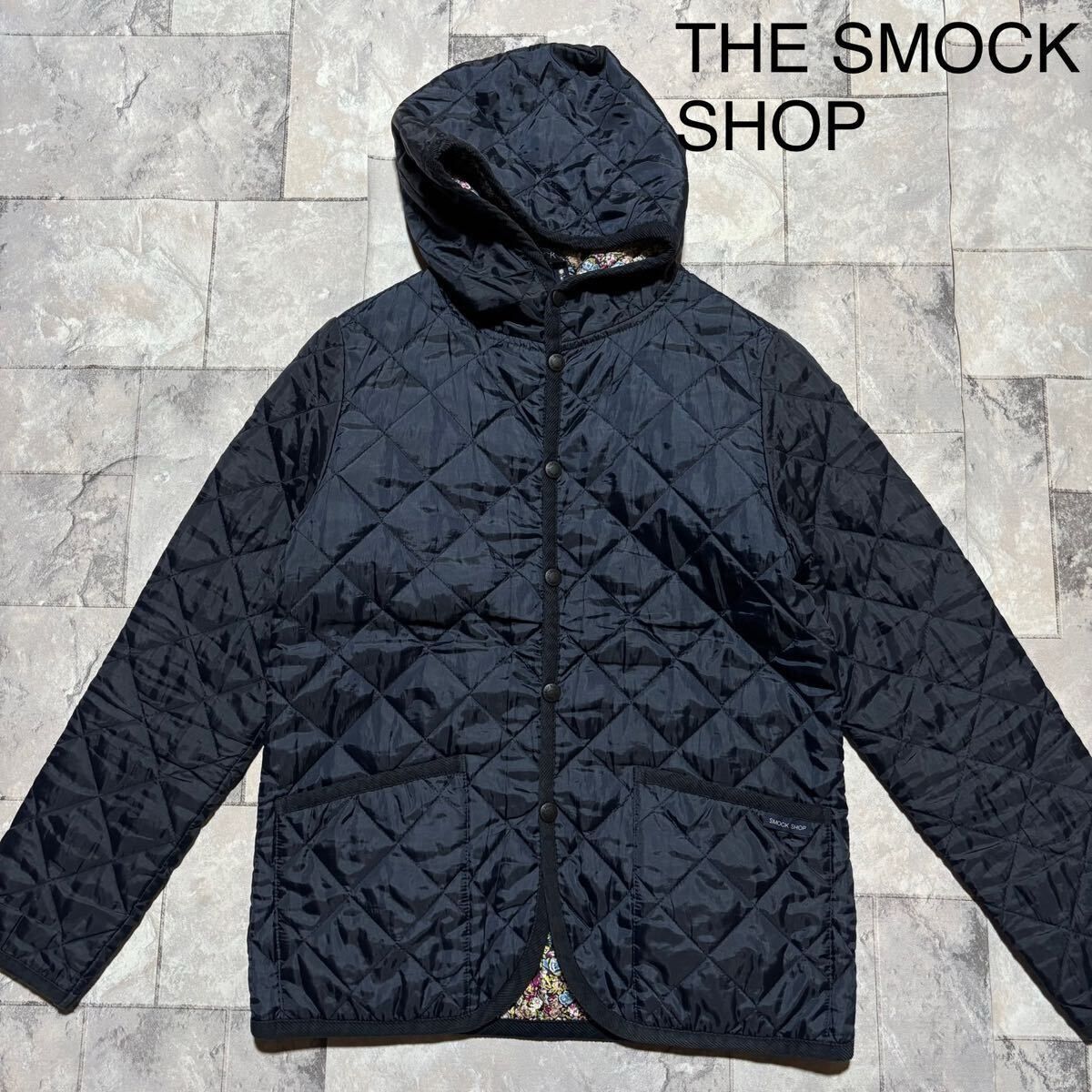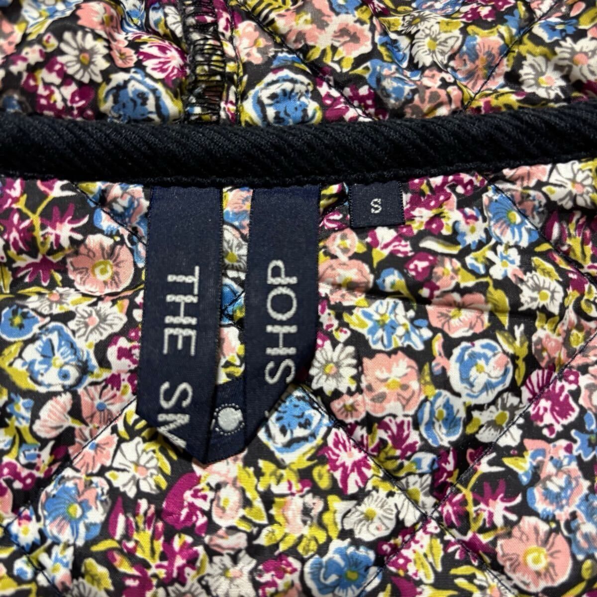 THE SMOCK SHOP スモックショップ キルティングジャケット ナイロン 裏地花柄 スナップボタン ネイビー レディース サイズS 玉FS1676