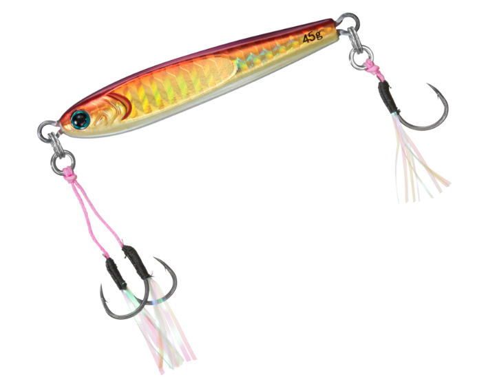 タイジギやイサキジギングなど、スーパーライトジギングに対応したTGベイトチューンナップモデル。こだわりのフックセッティングで死角のないフッキングを実現。非対称ホログラムの採用でフラッシング効果も抜群。アデルホログラムバージョンも追加されさらにラインナップ充実。