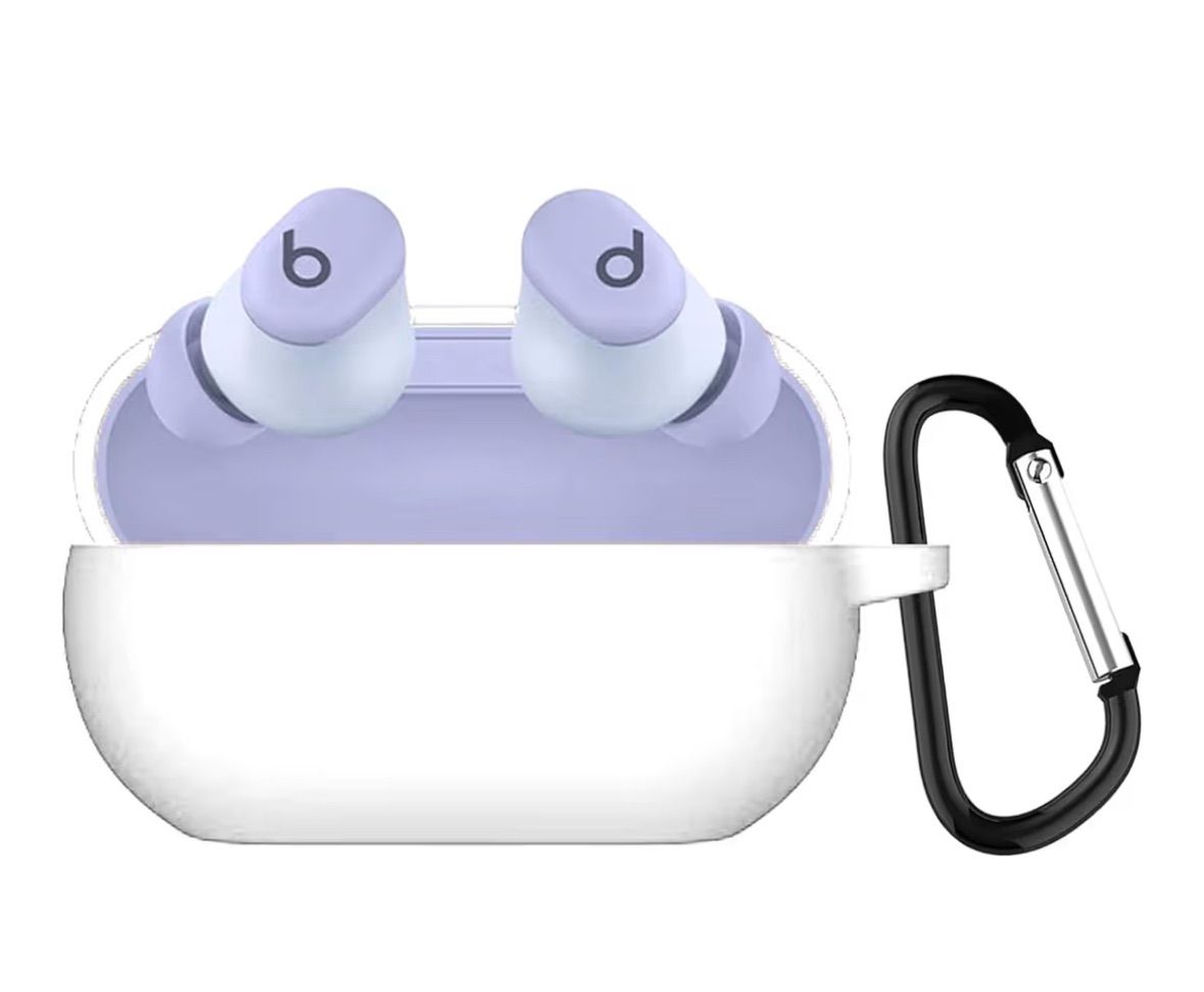 For Beats Solo Buds 用 ケース Beats Solo Buds 用 カバー シリコン素材 ケース 保護カバー 落下防止 キズ防止 耐衝撃 軽量 装着充電可能 防水防塵 カラビナ付き(ホワイト)