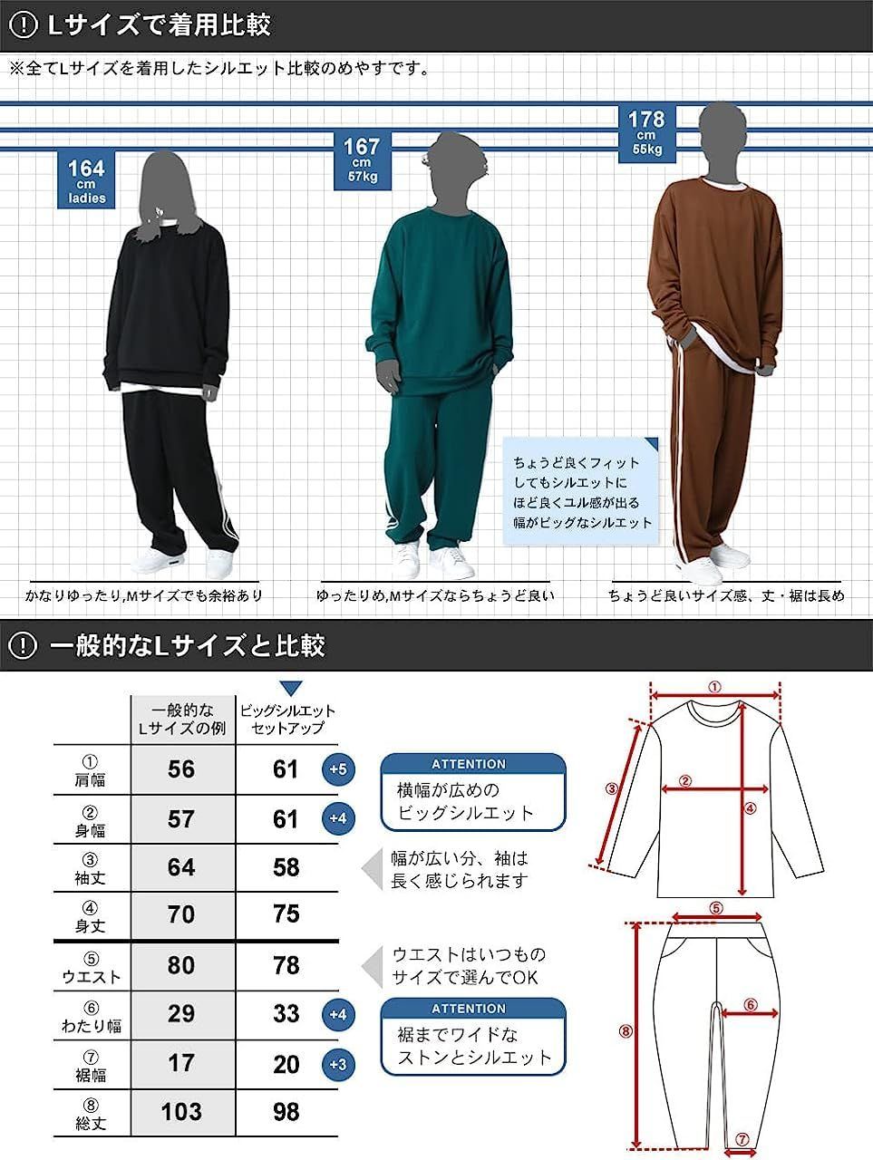 [ソレイルドール] ジャージ メンズ 上下 上下セット ビッグシルエット トレーナー M-5L ストレッチ ルームウェア セットアップ